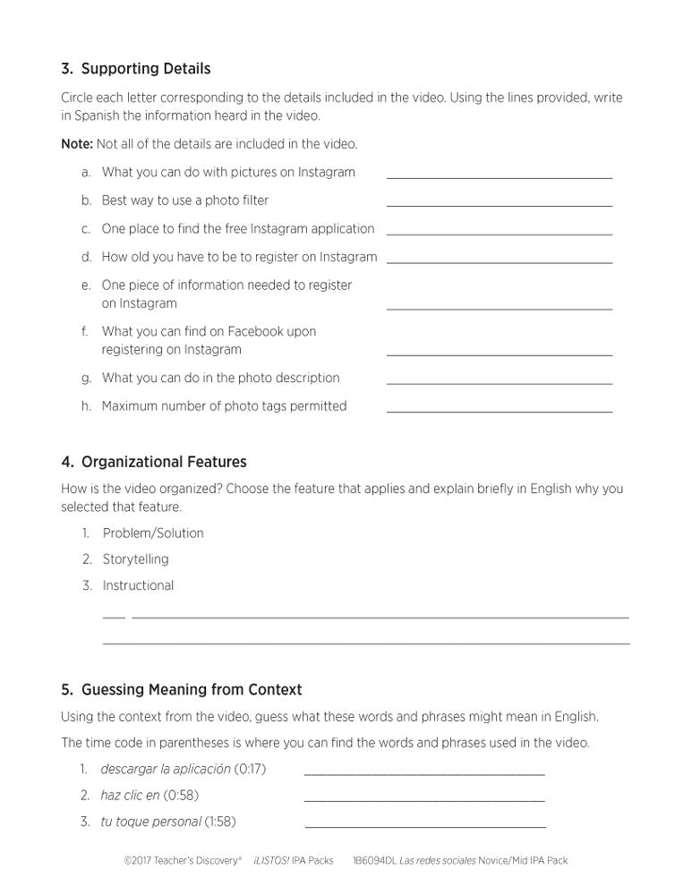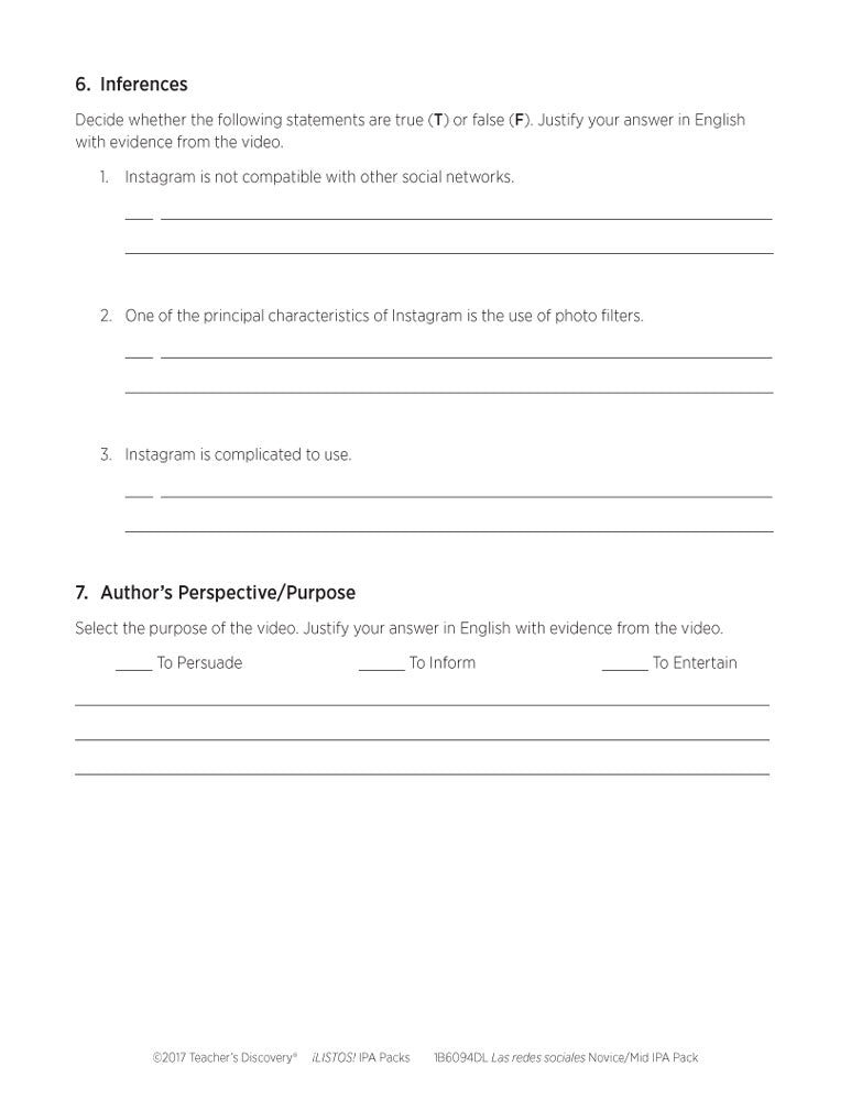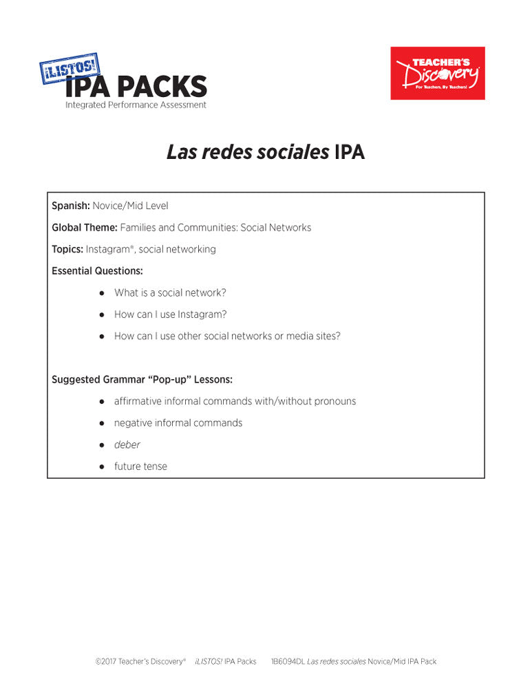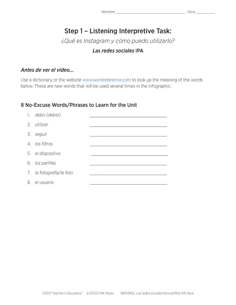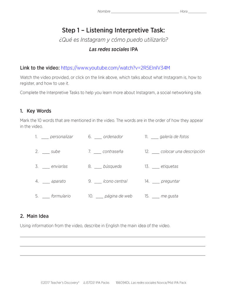 This ¡LISTOS! IPA Pack Download is based on two authentic resources: an infographic and a two-minute video which talks about what Instagram® is, how to register, and how to use it entirely in Spanish.