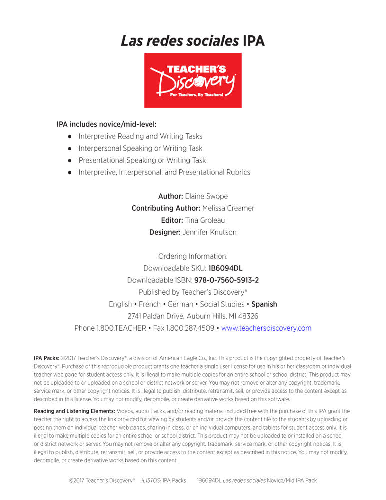 Las redes sociales Novice-Mid Spanish IPA Pack - DIGITAL RESOURCE DOWNLOAD is backordered and will ship as soon as it is back in stock.