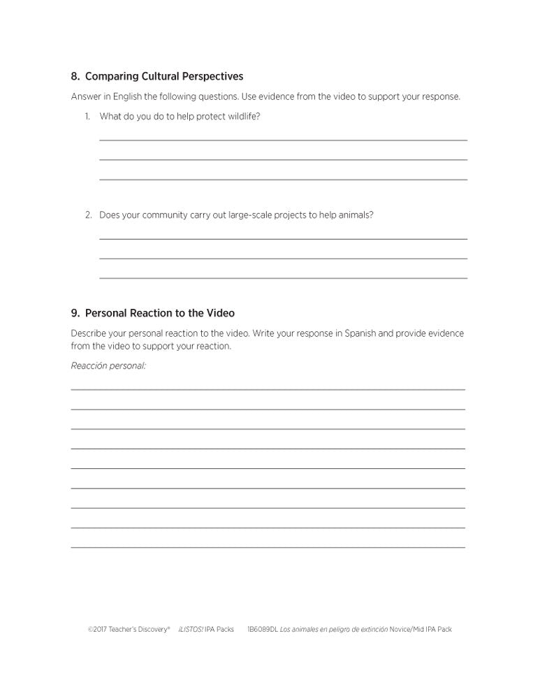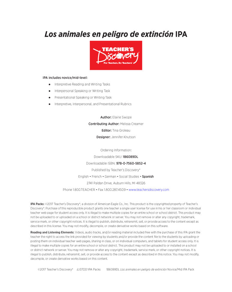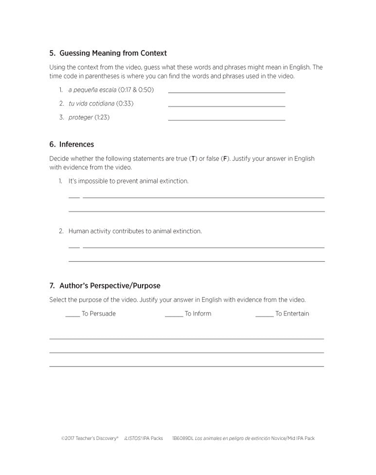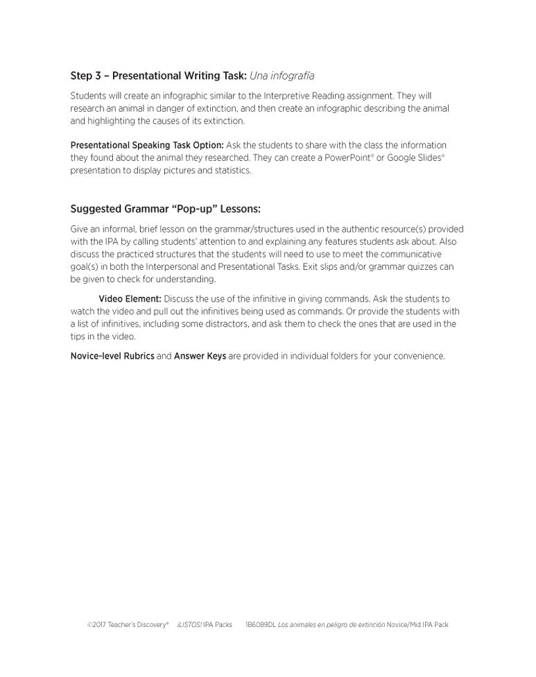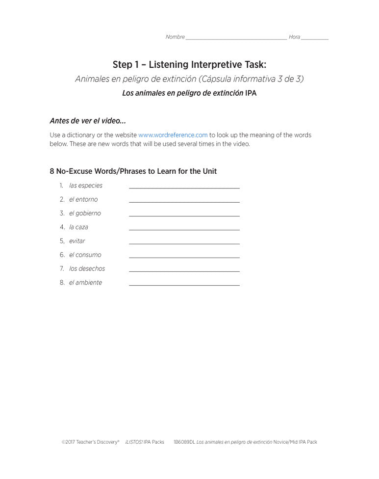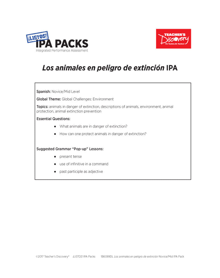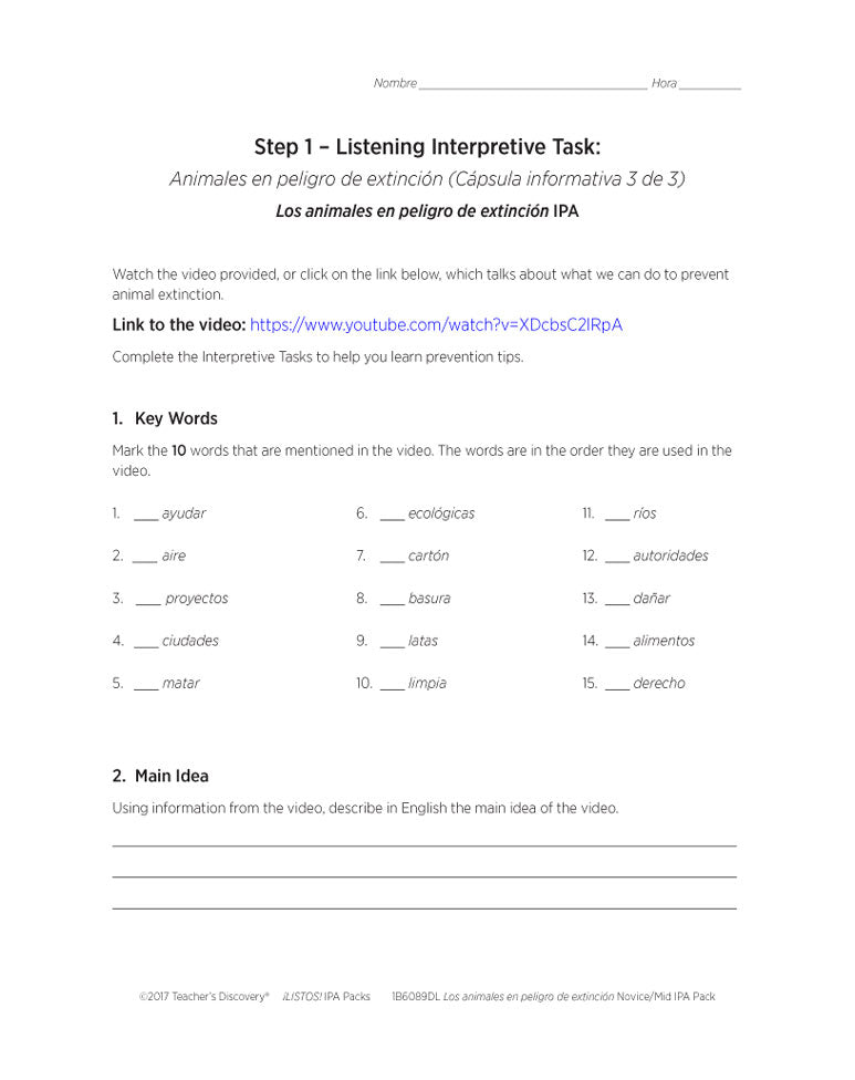 This ¡LISTOS! IPA Pack Download is based on two authentic resources: an infographic and a two-minute video which talks about what we can do to prevent animal extinction entirely in Spanish.