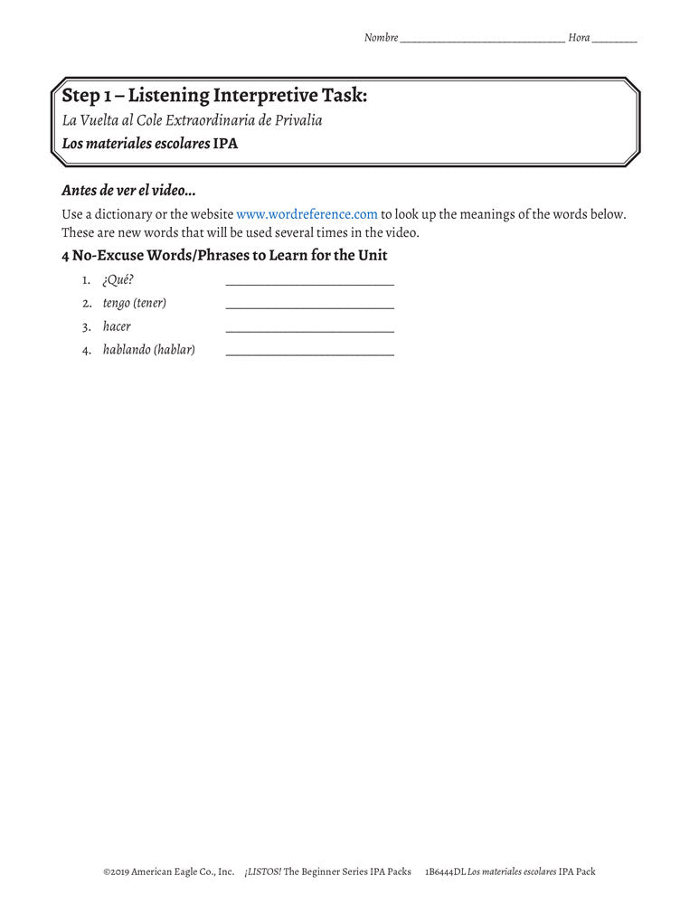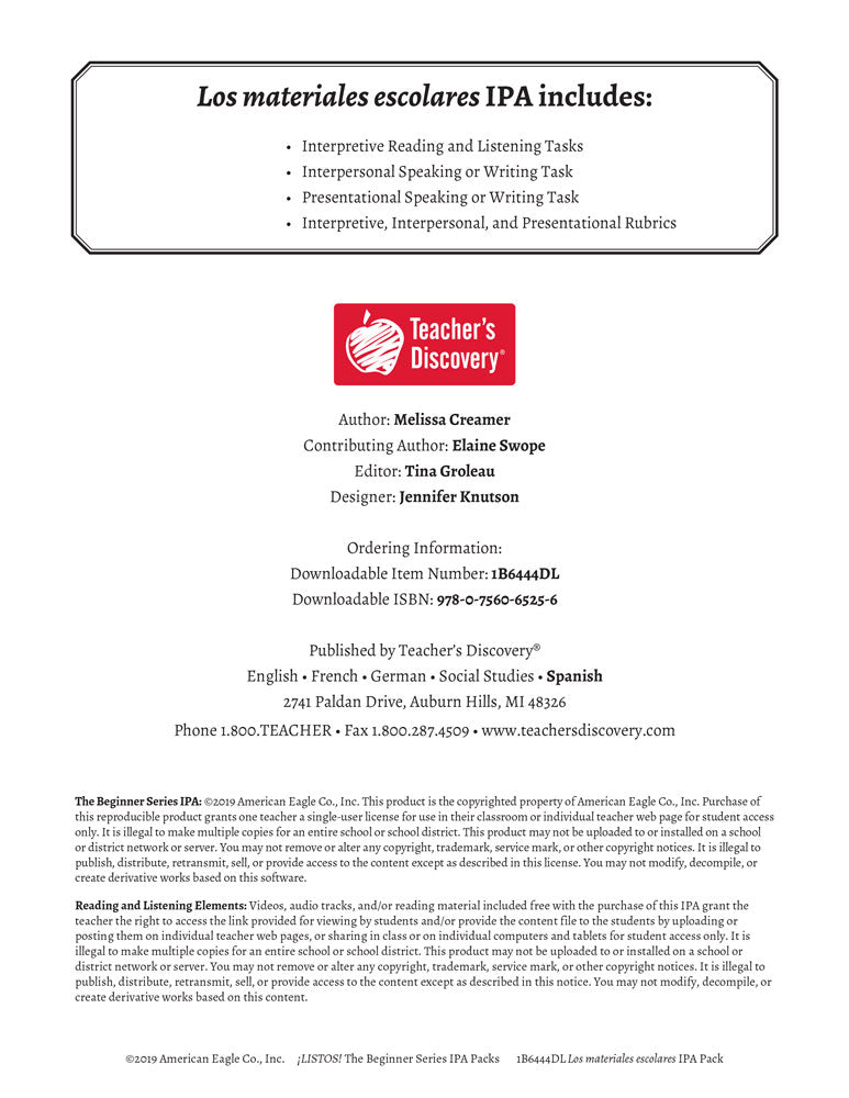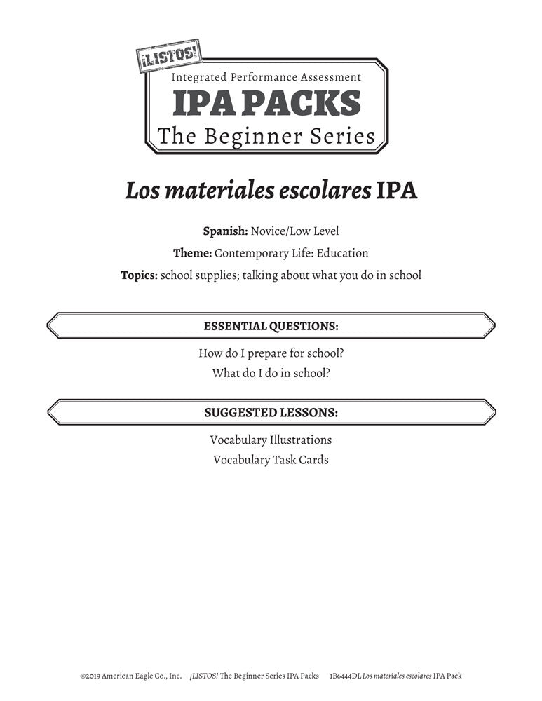 Los materiales escolares: The Beginner Series Spanish IPA Pack - DIGITAL RESOURCE DOWNLOAD