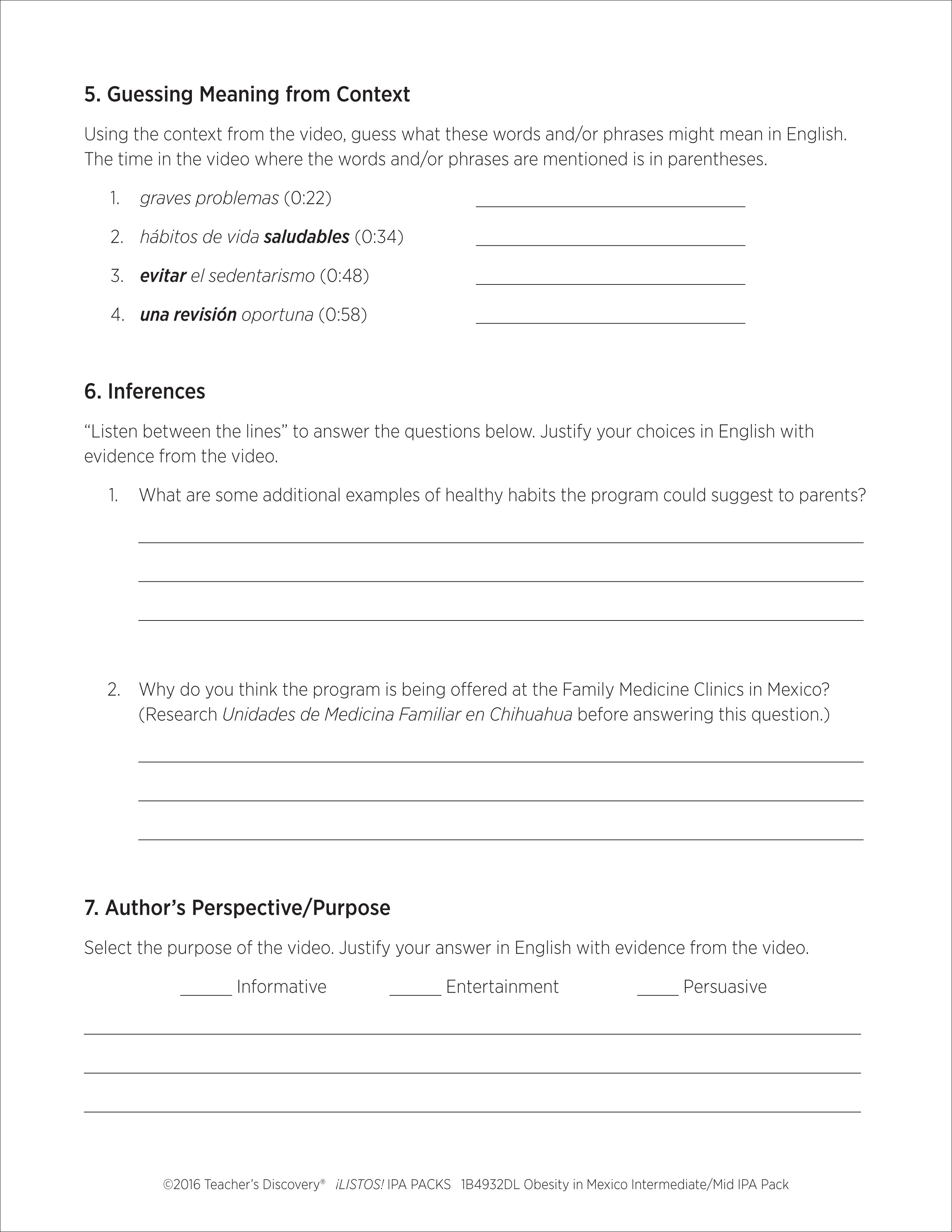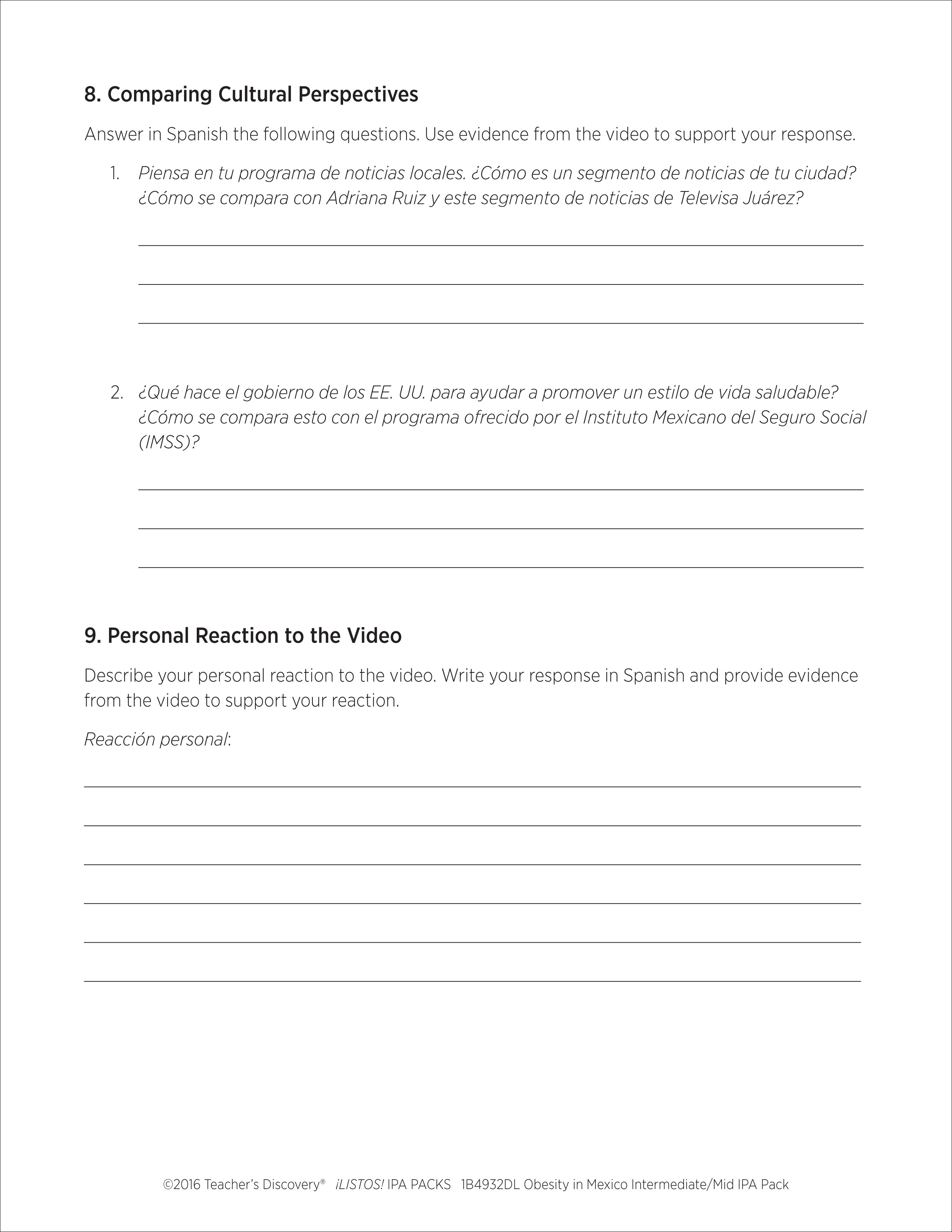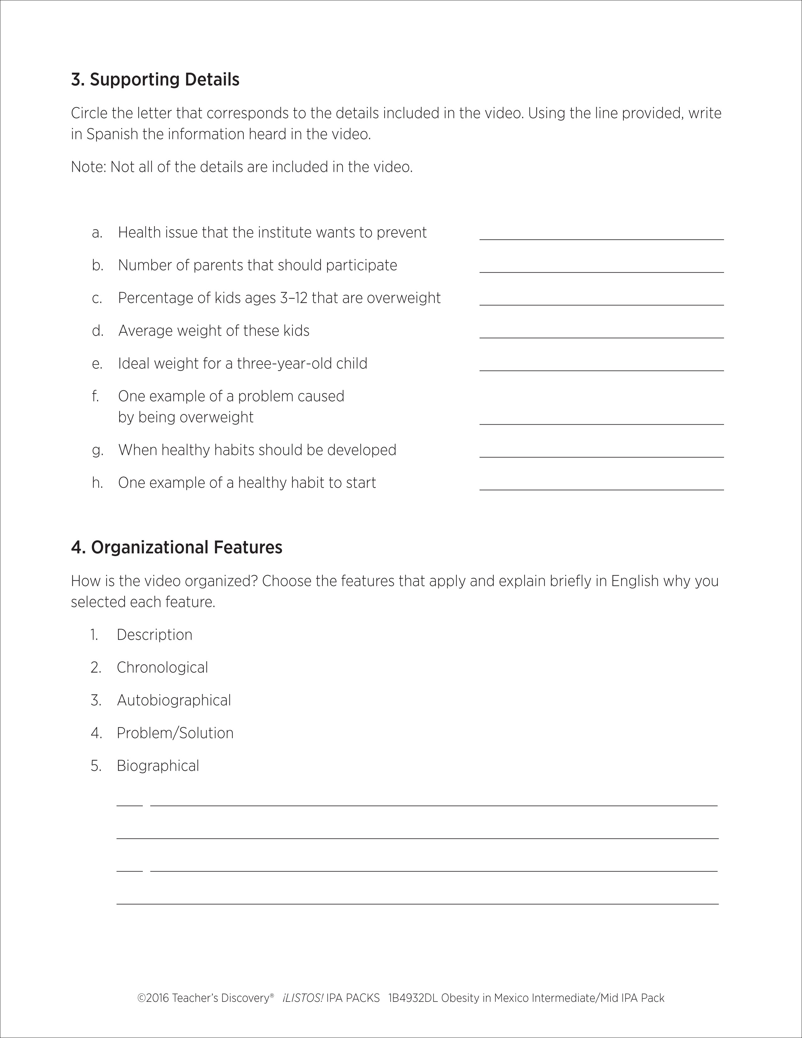 This ¡LISTOS! IPA Pack is based on two authentic resources: an infographic chart and authentic news story with suggestions by the Mexican Social Security Institute to prevent childhood obesity in 100% Spanish.
