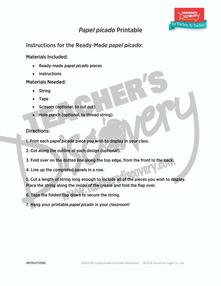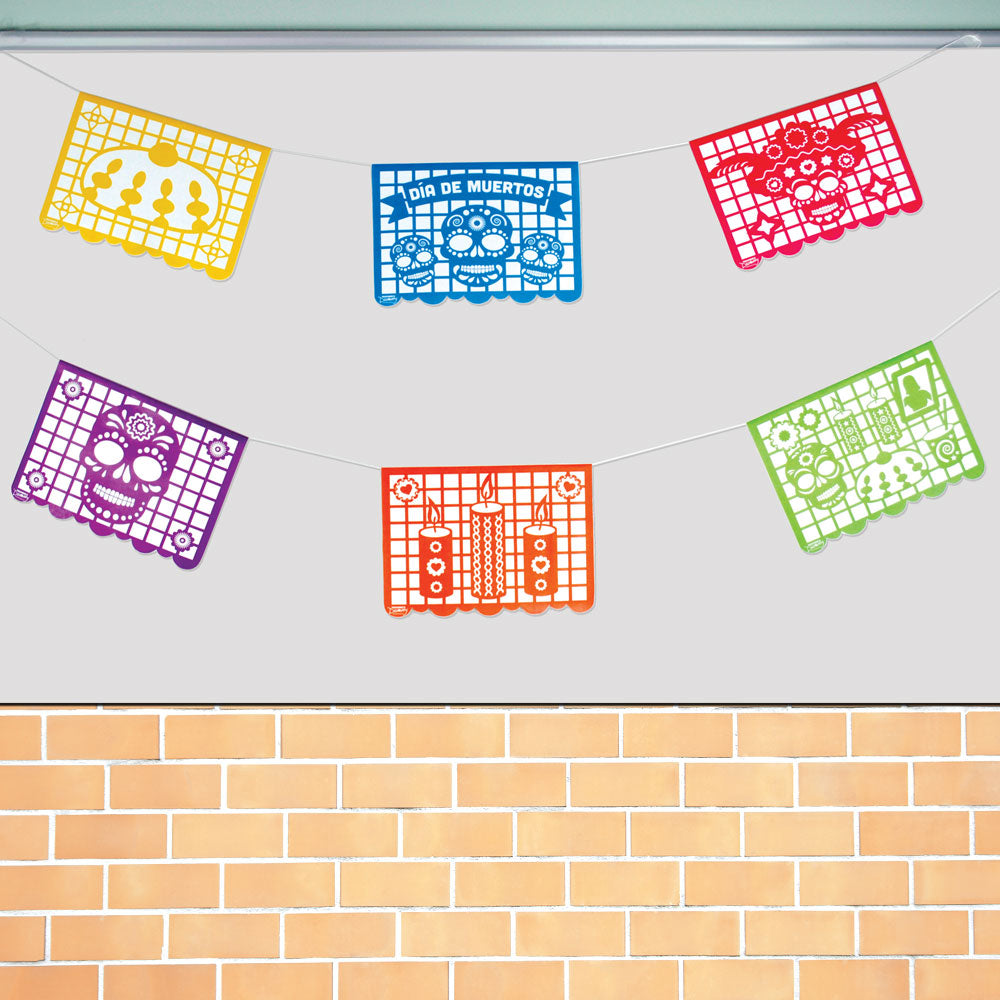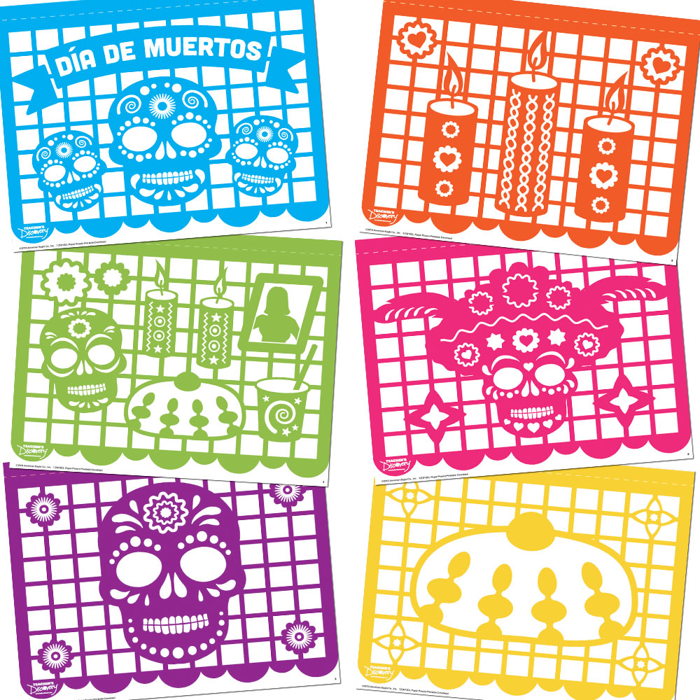 Decorating for Day of the Dead is easy, fast, and affordable! This PDF download includes six full-color printable designs and instructions. Just select the designs you wish to display, then print, cut, and hang! Reproducible, designs print on 8.5 x 11-inch paper.