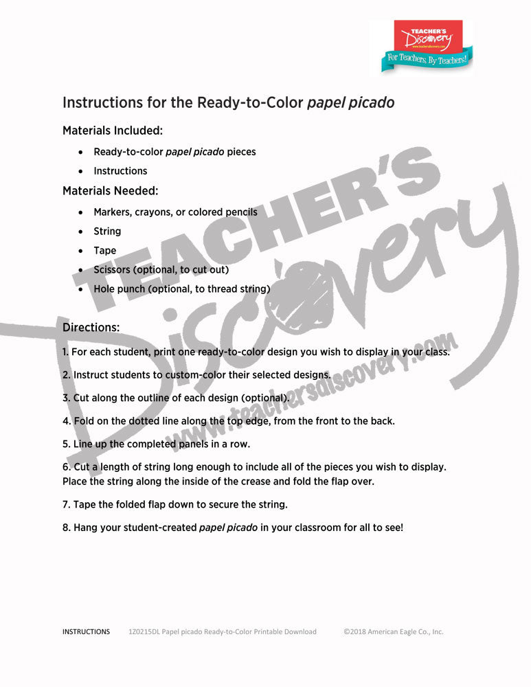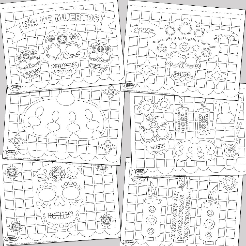 Get your classroom ready for Day of the Dead with printable, ready-to-color papel picado panels! It’s easy, fun, and affordable! This PDF download includes six ready-to-color designs and instructions. Let your students select their favorite design, then print, customize, cut, and display! Reproducible, designs print on 8.5 x 11-inch paper.