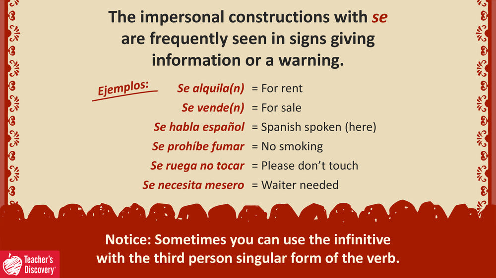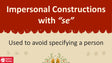 Quick Spanish Grammar Presentation – Impersonal Constructions with “se”