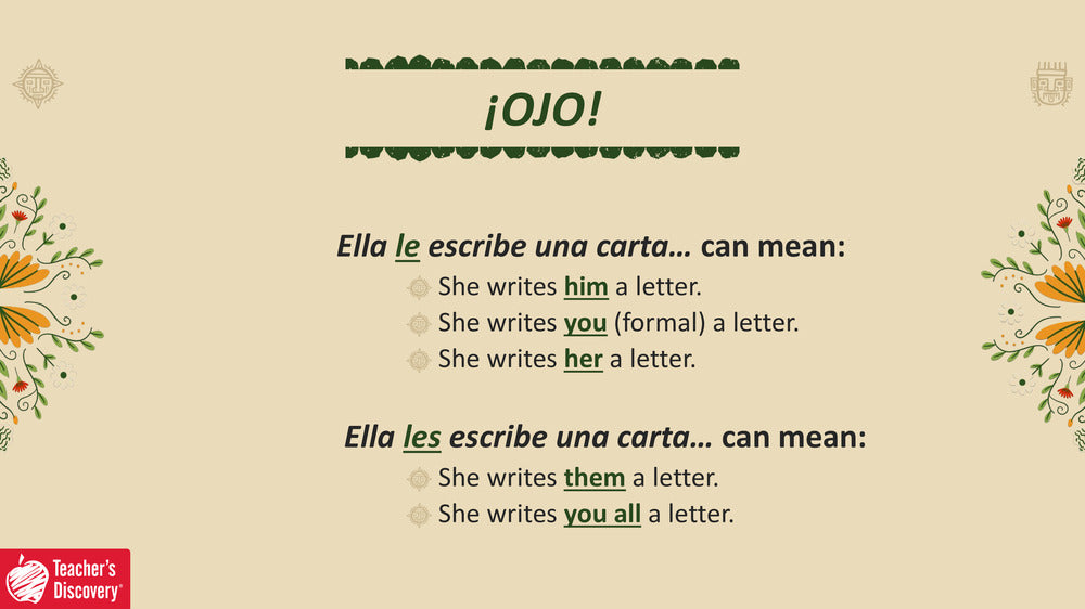 Quick Spanish Grammar Presentation – Indirect Object Pronouns is backordered and will ship as soon as it is back in stock.