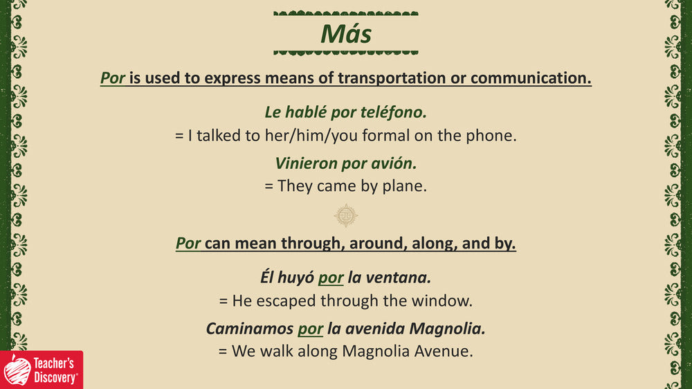 Quick Spanish Grammar Presentation – Por and Para is backordered and will ship as soon as it is back in stock.