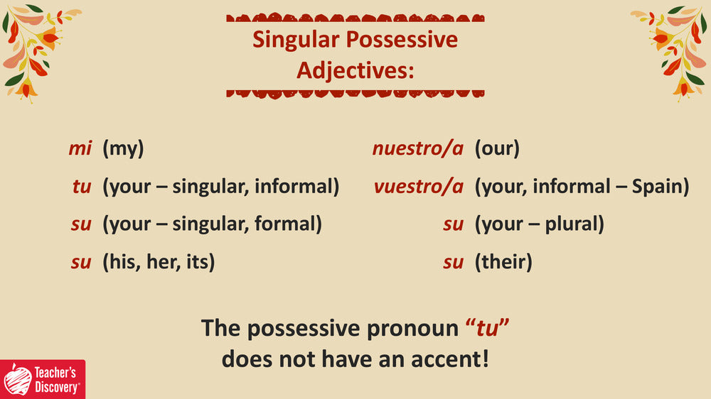Quick Spanish Grammar Presentation – Possessive Adjectives