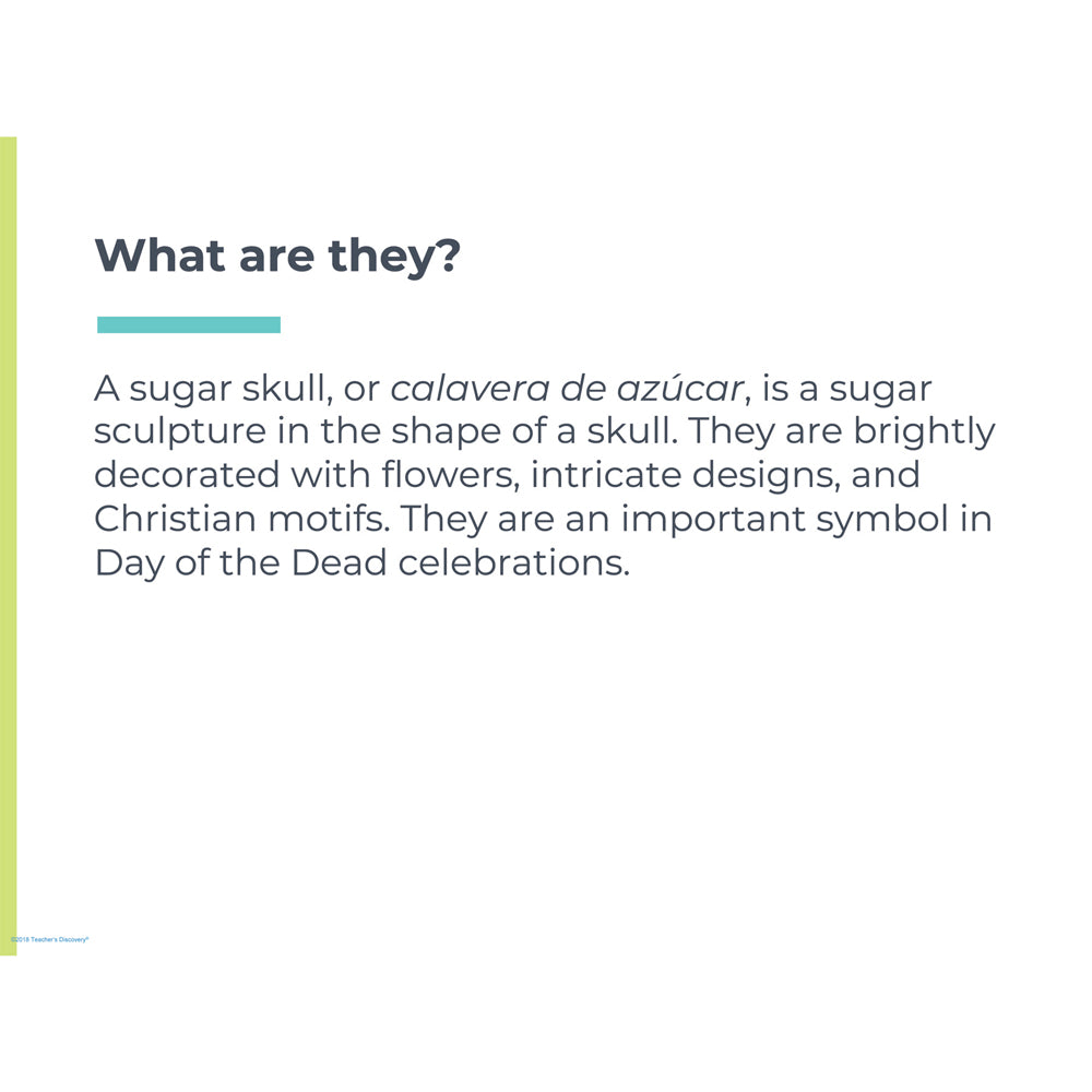 Sugar skulls appear in American pop culture again and again. Show your students that these works of art have an ancient origin and a complicated history, and celebrate their true meaning as symbols of life and love.