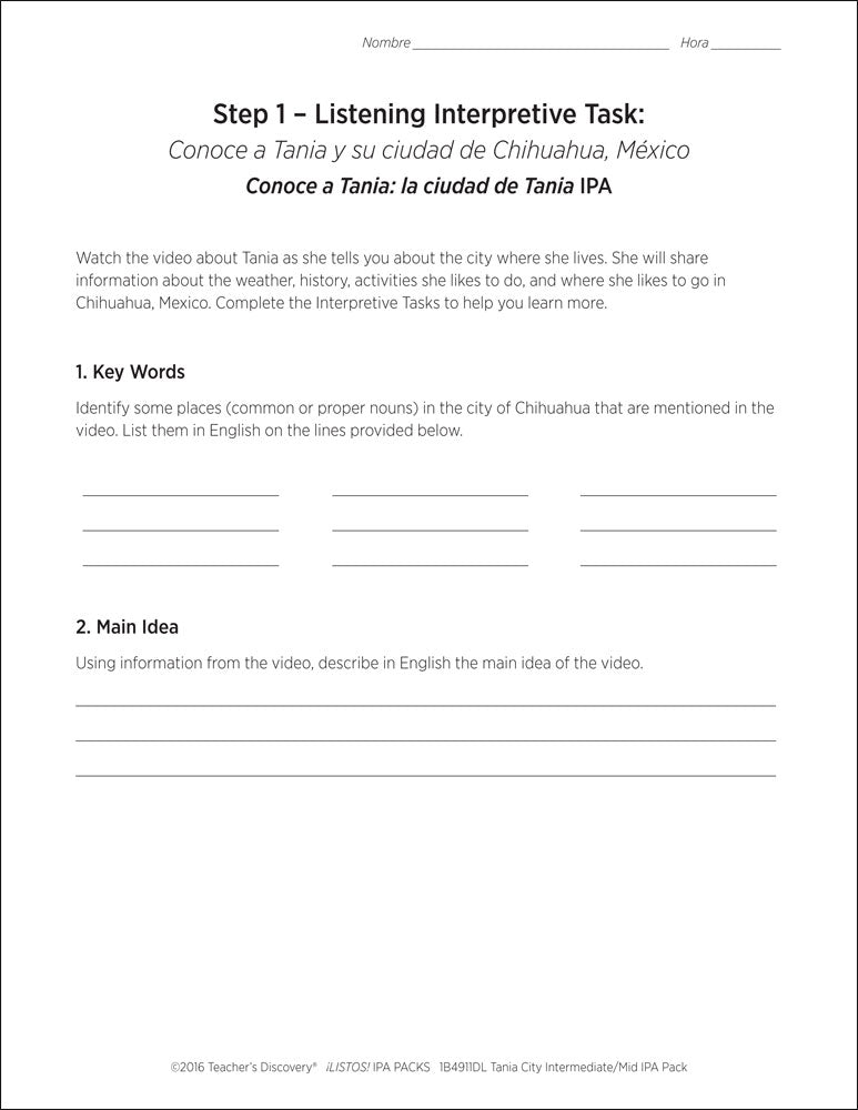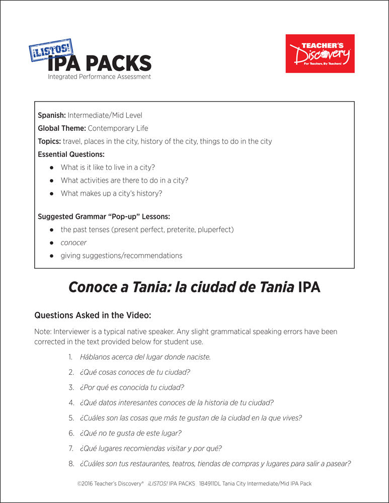 Tania City Intermediate-Mid Spanish IPA Pack - DIGITAL RESOURCE DOWNLOAD