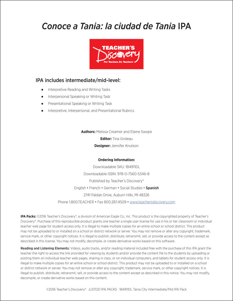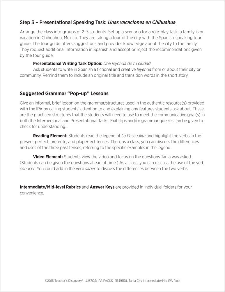 Tania City Intermediate-Mid Spanish IPA Pack - DIGITAL RESOURCE DOWNLOAD is backordered and will ship as soon as it is back in stock.