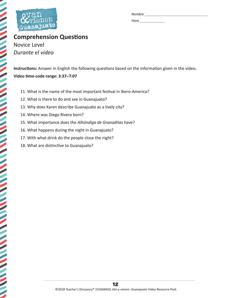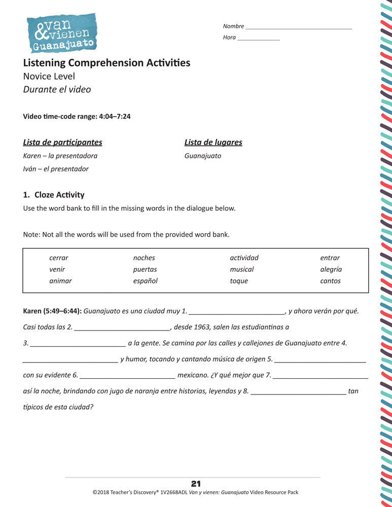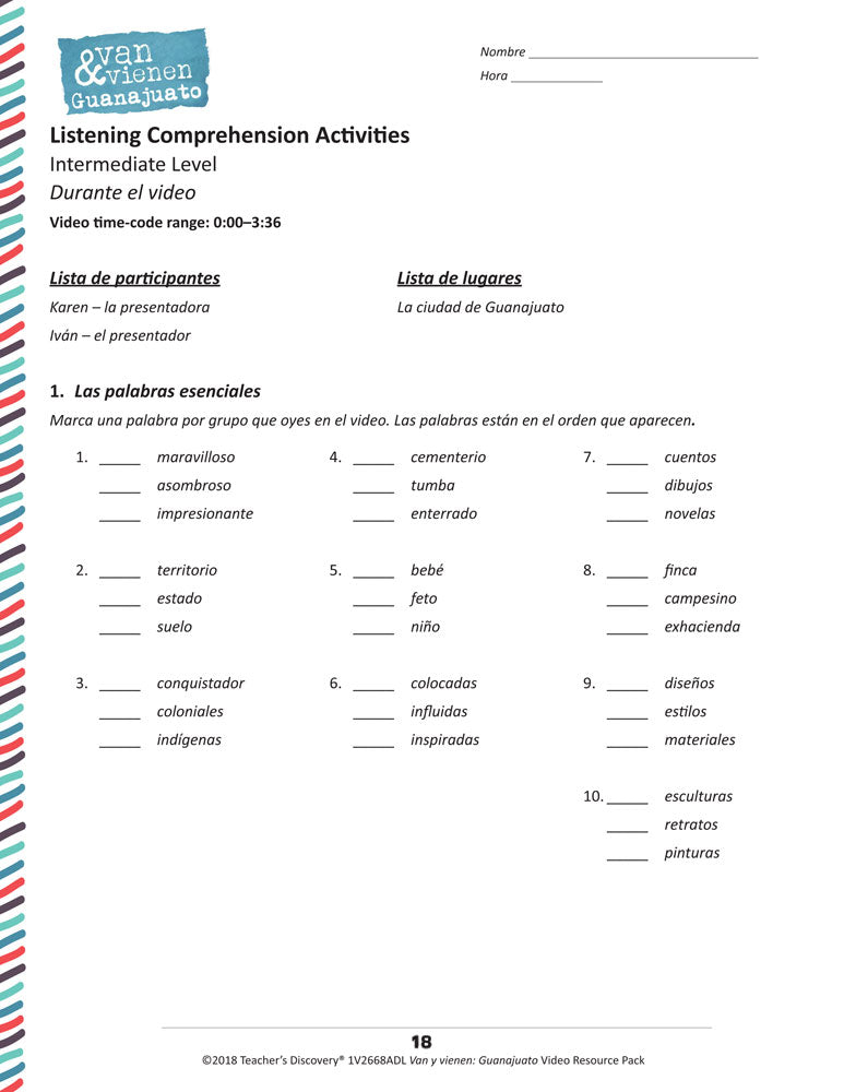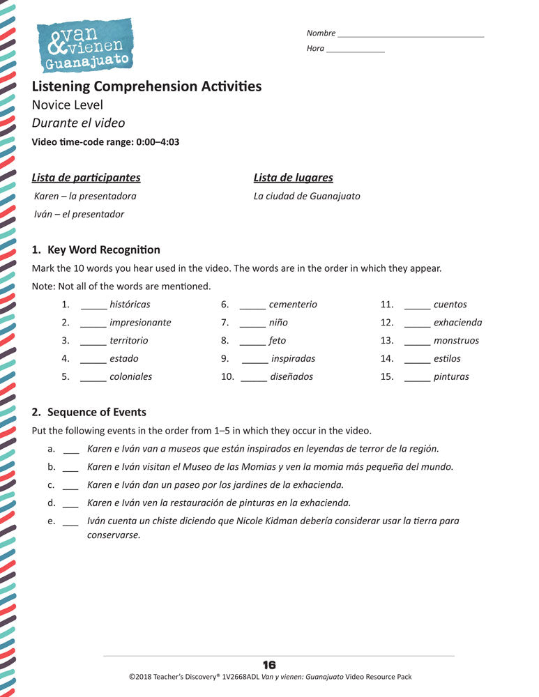 Includes a reproducible Spanish script in PDF format, downloadable for student use. Include email address with your order for instant delivery.