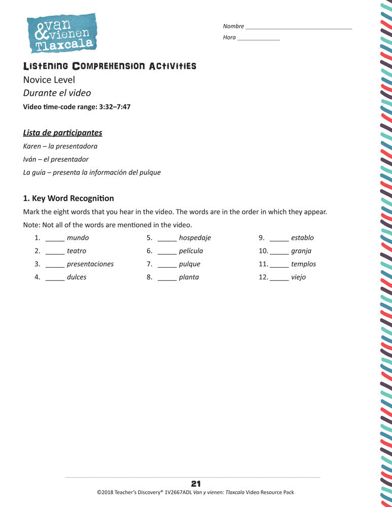 Includes a reproducible Spanish script in PDF format, downloadable for student use. Include email address with your order for instant delivery.