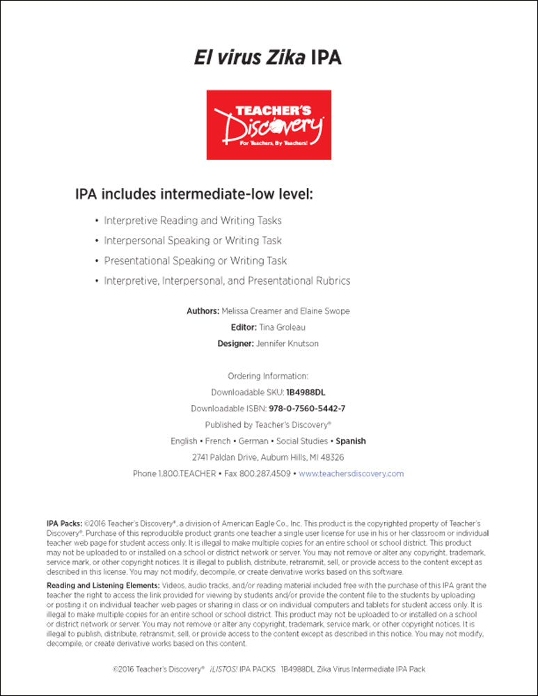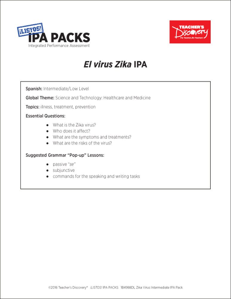 Zika Virus Intermediate-Low Spanish IPA Pack - DIGITAL RESOURCE DOWNLOAD