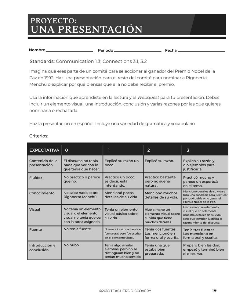 ©2018. Spanish. Level 1, Novice Mid to Novice High. High school. Reproducible. 126 pages.