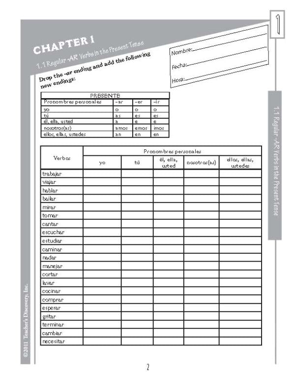 SERIOUSLY. This is the MOST complete, MOST teacher-friendly collection of Spanish verb drills and student exercises ever compiled for classroom use!