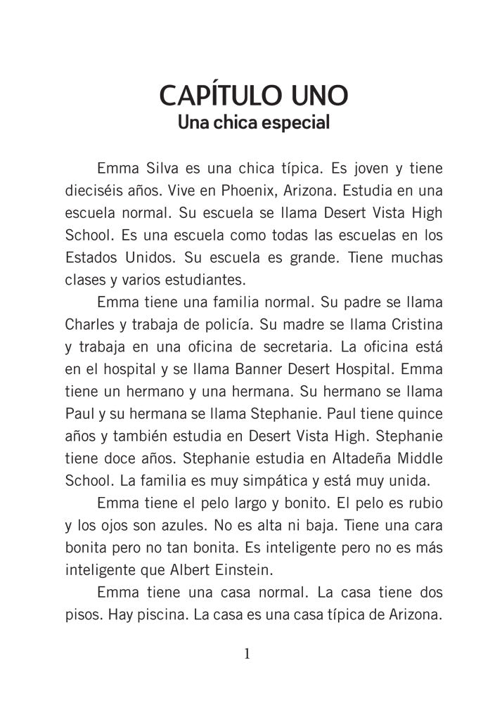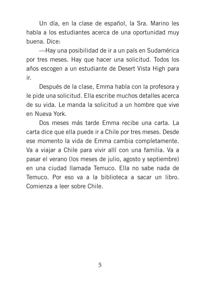 Ana Silva es una persona normal. Es joven. Tiene dieciséis años. Vive en Hermosa Beach, California. Estudia en una escuela normal... Ana, a 16-year-old American girl, goes to high school for three months in Chile. She meets new friends—one boy is especially nice, while another boy is definitely not! Among her adventures: Ana manages to save the life of a new friend...