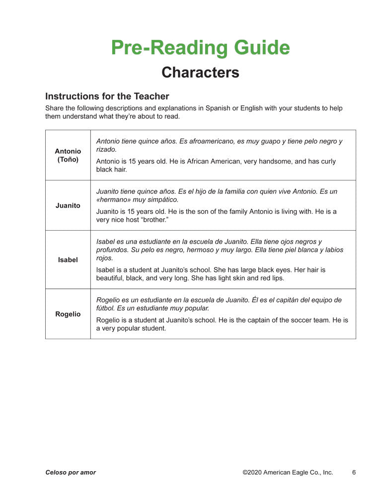 - Pre-Reading Guide: Character and setting summaries, cultural notes, and helpful words and phrases