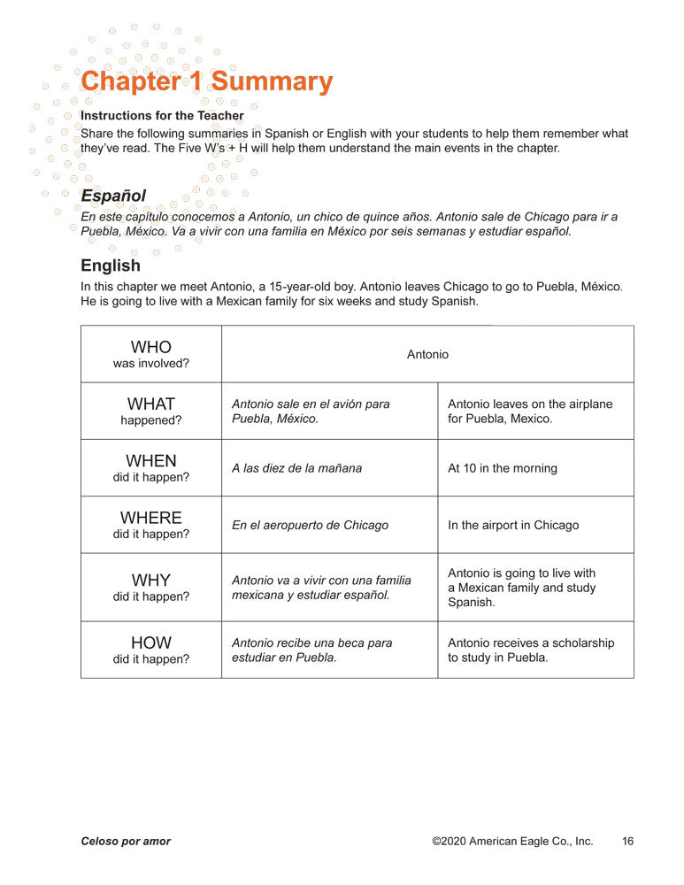 Teacher's Guide and Student Activities: ©2020. Spanish, English. Level 2. High school. 8.5 x 11 inches. PDF download, 91 pages.
