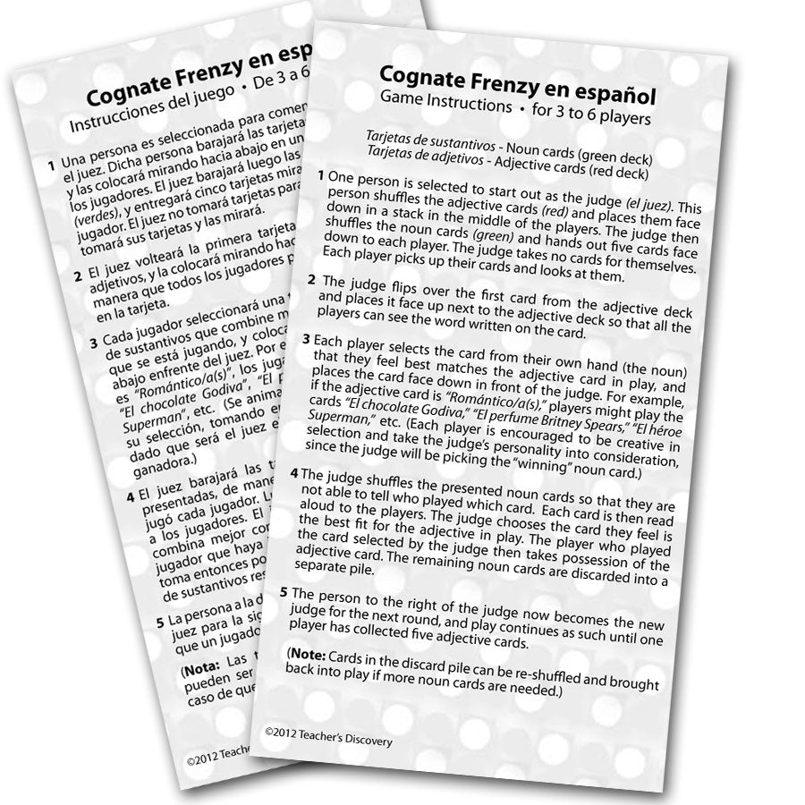 It is an ideal game to play as an ice-breaker to prime students for learning a new language. The game includes two vocabulary lists with translations of all cards. It’s also a perfect game for vocabulary reinforcement and recognition for upper-level Spanish classes.
