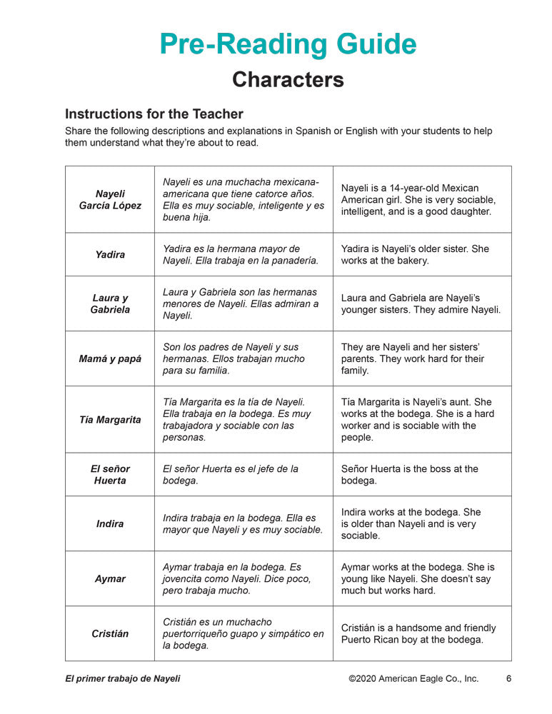 This all-in-one, reproducible teacher’s guide gives you everything you need to support your lesson on the Level 2 Acquisition Reader El primer trabajo de Nayeli. You get: