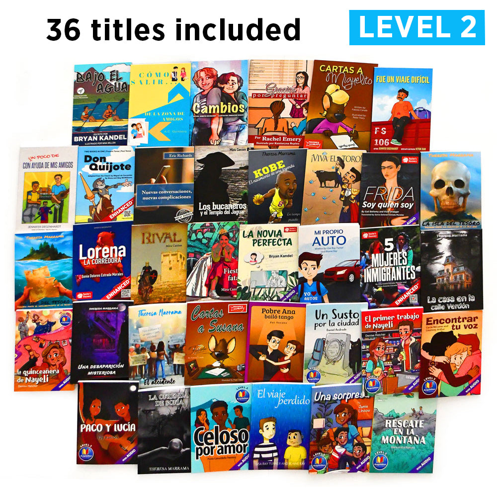 ©2012–2025. Spanish. Level 2. Middle school, high school. Library of 36 readers. Various sizes. Softcover. Various word counts. Titles subject to change based on current inventory.