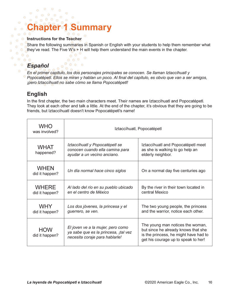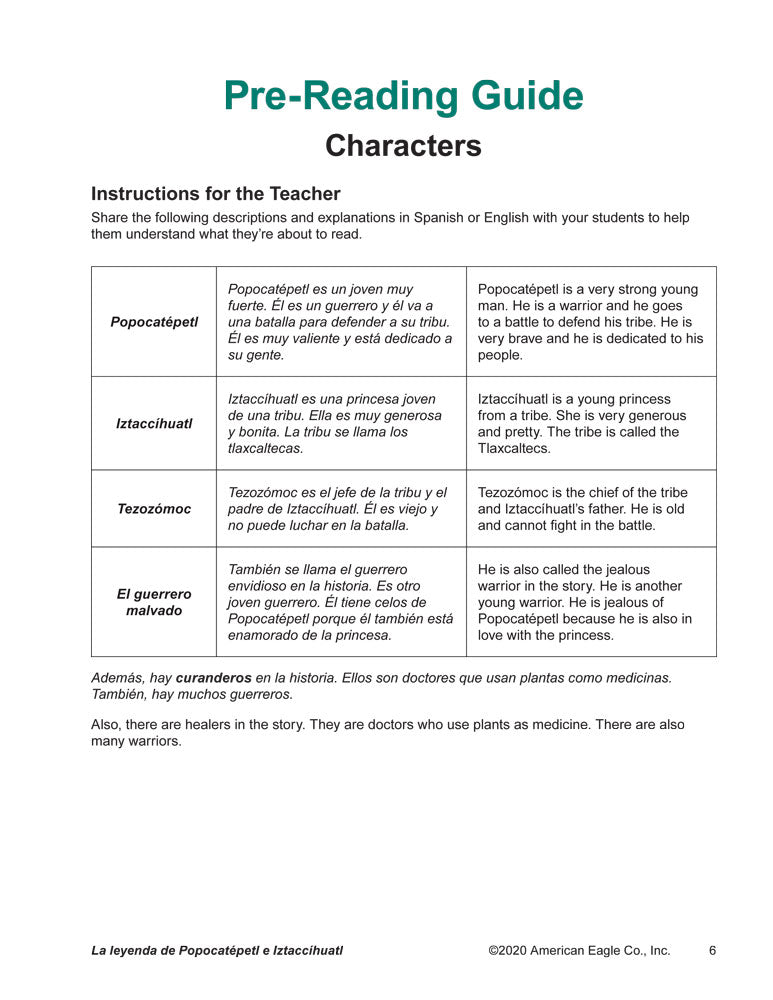 • La leyenda de Popocatépetl e Iztaccíhuatl Teacher's Guide and Student Activities Download (1B6828TGDL)