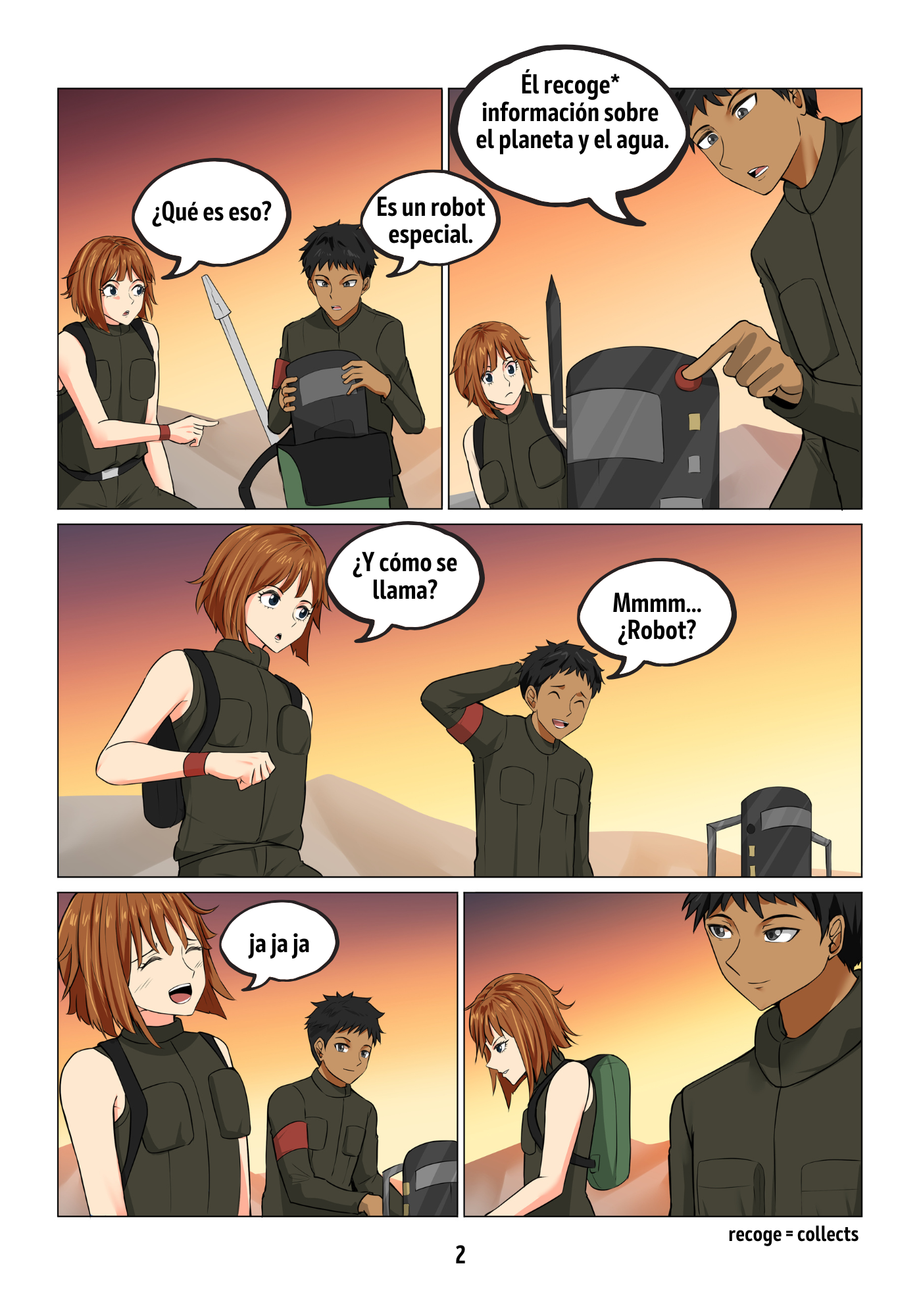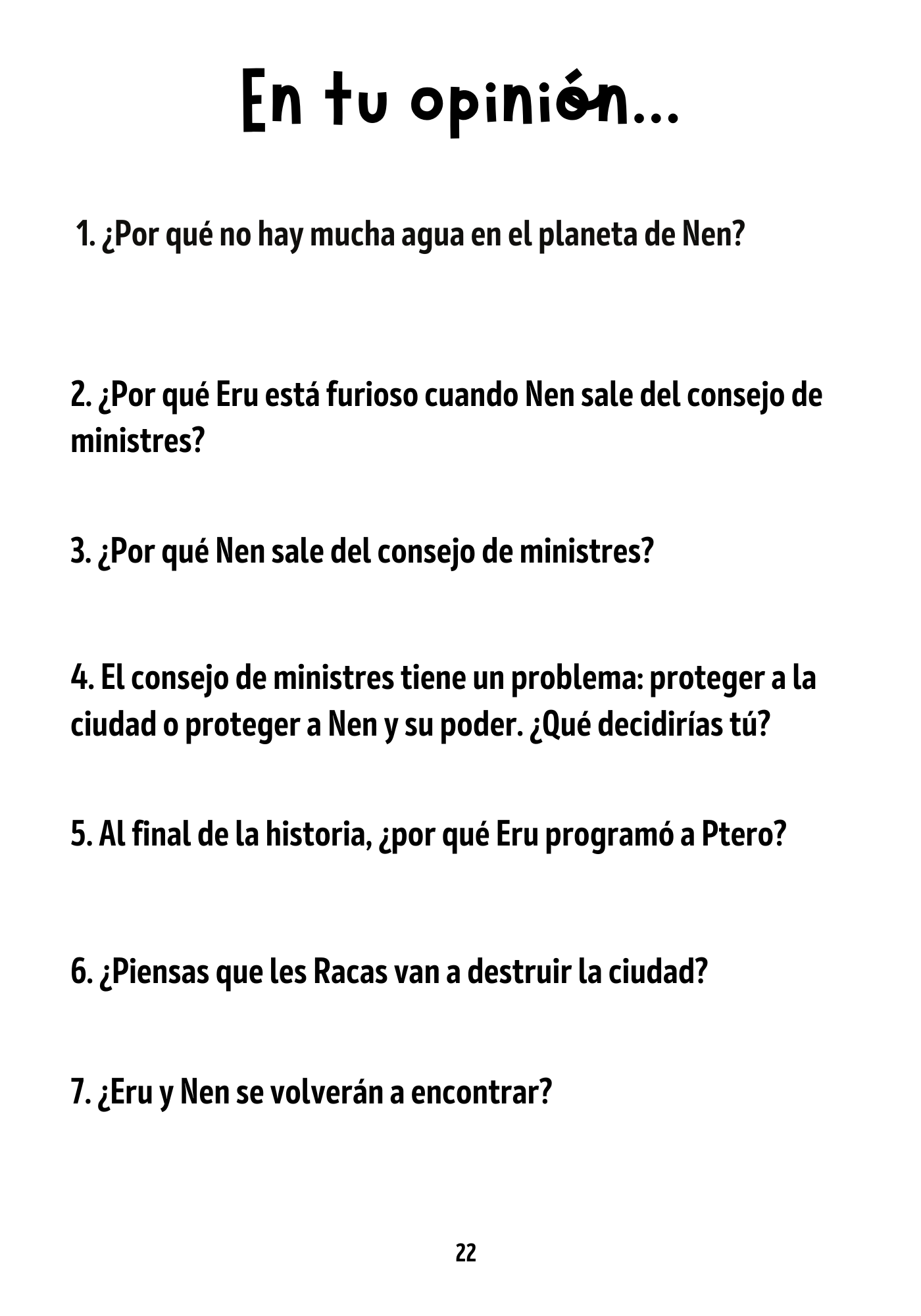 Eru helps Nen develop her special power in order to find much needed water for their city on the gray planet. But they are not the only ones looking for water and soon the Racas, a mysterious group of desert bandits, is on their trail. This graphic novel is 21 pages long and is the first book of The Gray Planet series. With 180 words and lots of cognates, "un poder peligroso" is an ideal book for Novice learners.