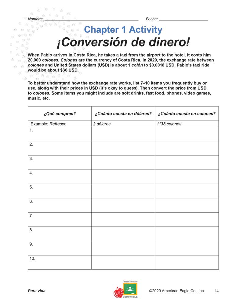 Teacher's Guide and Student Activities: ©2020. Spanish, English. Level 1. High school. 8.5 x 11 inches. PDF download. 94 pages.