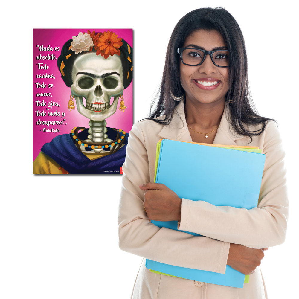 Frida Kahlo was proud of her Mexican heritage and often represented the Día de los Muertos holiday symbolically in her paintings. This poster is a great way to start a discussion about the holiday and Kahlo’s perspective of her heritage, as shown in her art.