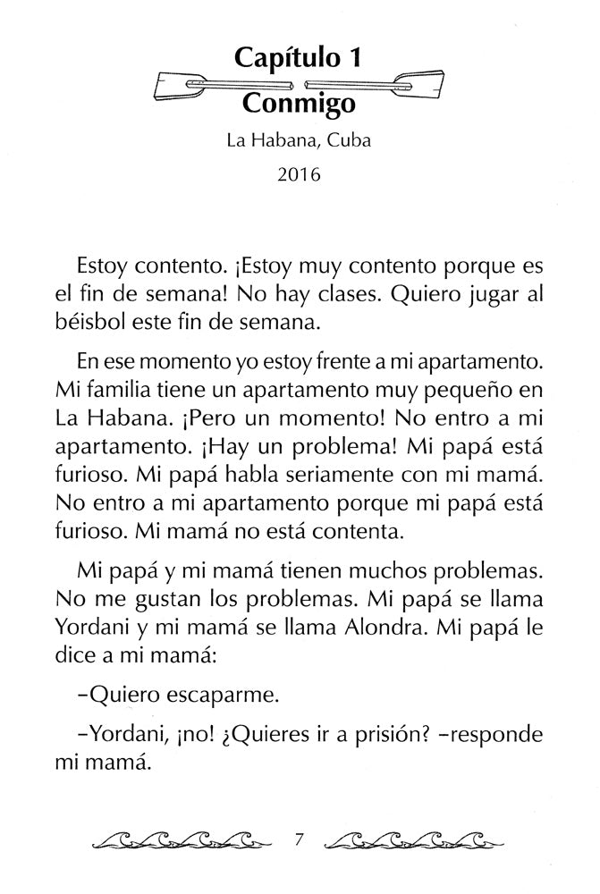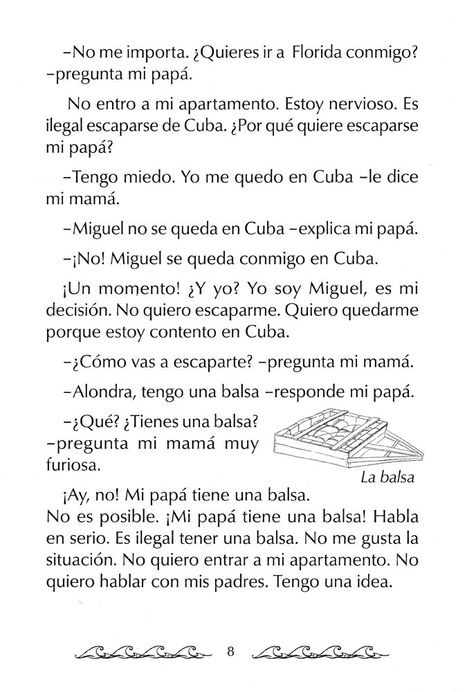Miguel's happiness turns to fear when he overhears his parents fighting. His dad is planning to escape Cuba on a raft and take him along. Miguel has heard stories of the dangerous journey: swift currents, giant waves, sharks, and pitch black nights. He is determined to stay in Cuba, but time is not on his side. Contains just 140 unique vocabulary words and English-Spanish cognates. Includes glossary. Illustrated with authentic photos.