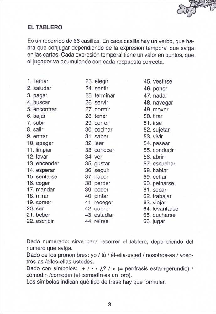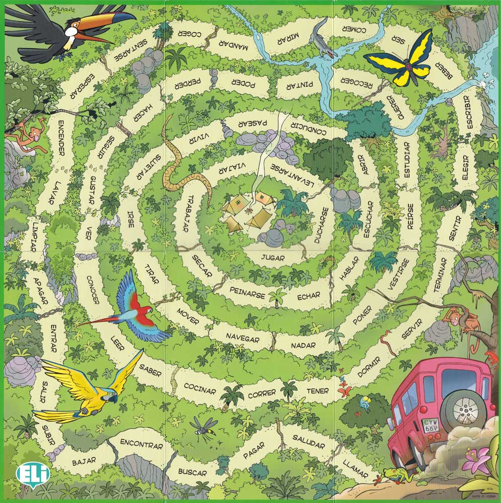 Designed for A2- to B1-level Spanish students, this fun game lets your whole class practice building sentences in presente, pretérito perfecto e indefinido, and futuro imperfecto tenses. They simply toss the dice and create a sentence based on what they roll, and the judge awards points based on the sentences. At the end of the game, the player with the most points wins! ©2014. 2–5 players or teams. Contains one game board, 66 verb cards, three dice (numbers, subject pronouns, and sentence type), 15 game pieces, point tokens, and instruction booklet. Beginning, Intermediate levels. Middle School, High School.