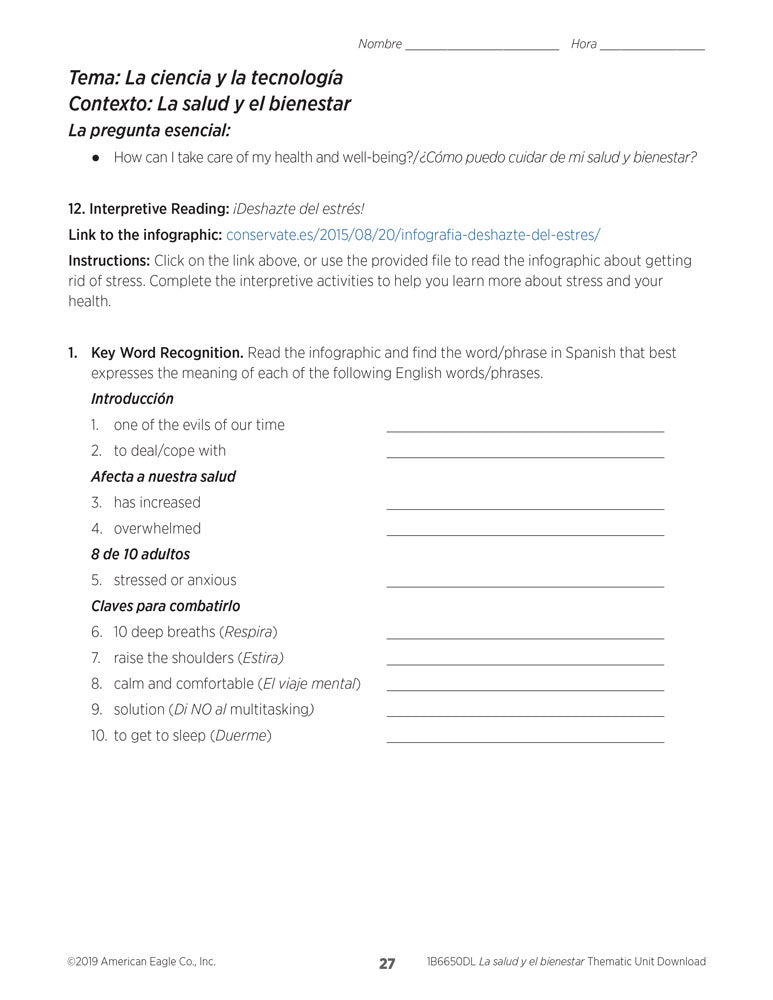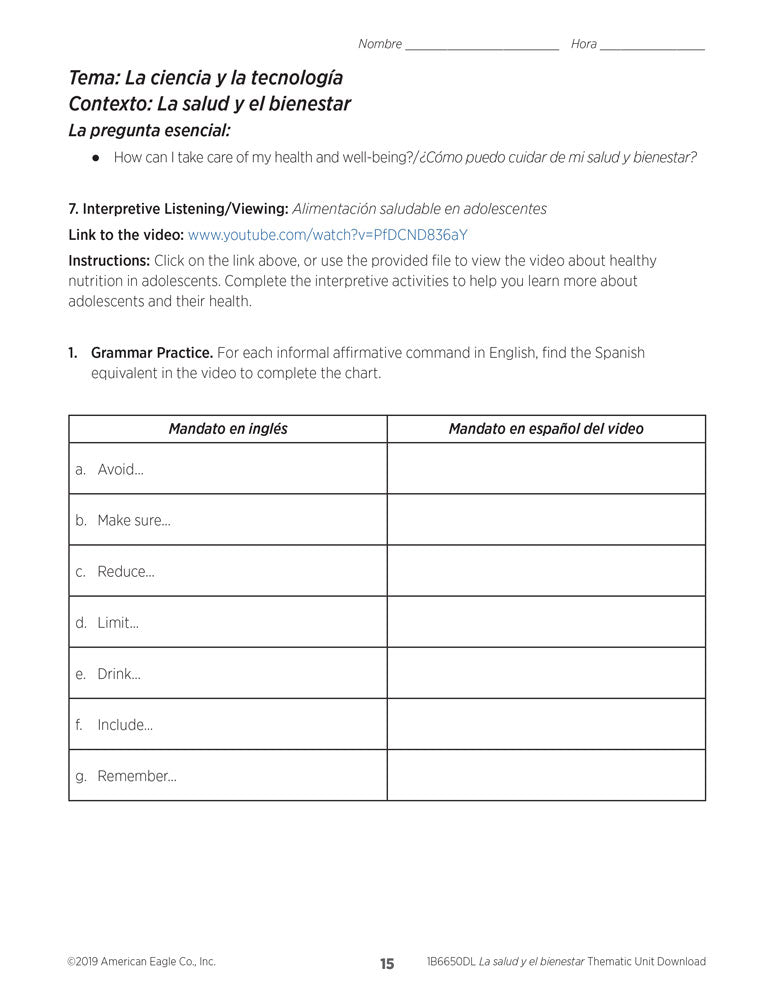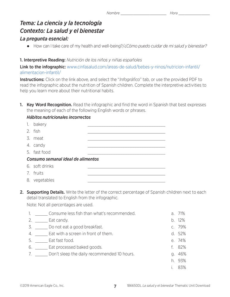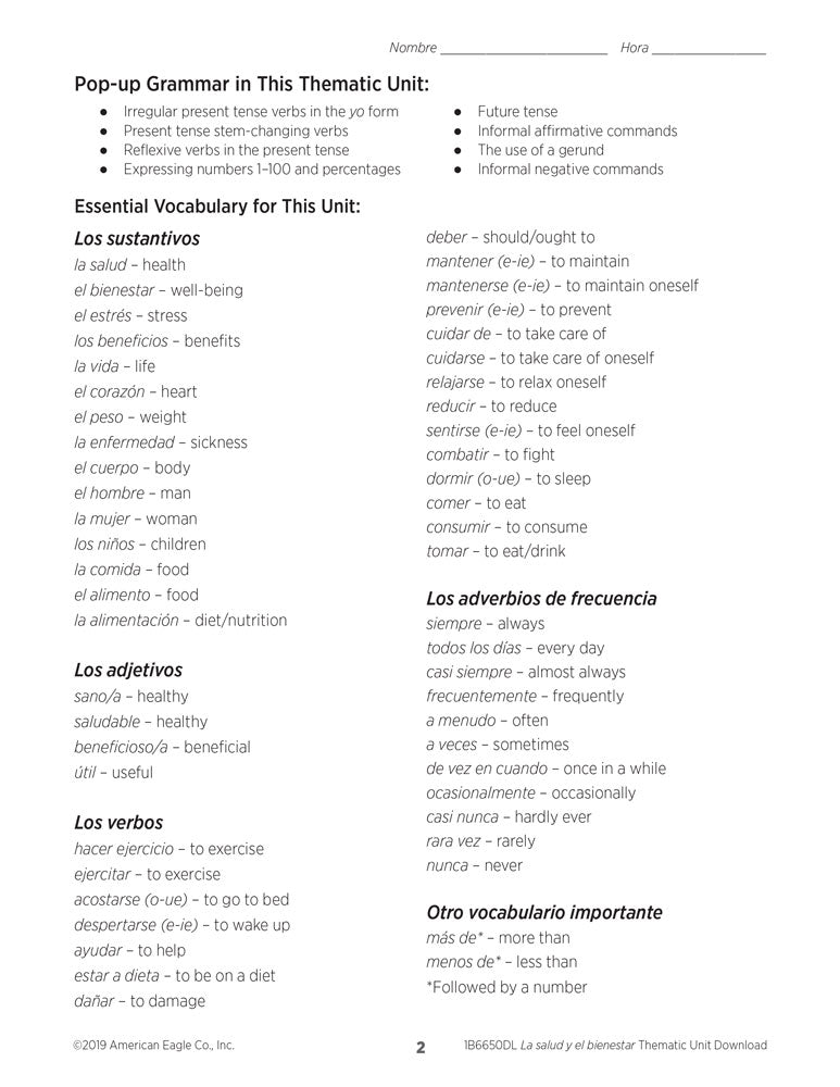 El mundo hispanohablante: La salud y el bienestar Complete Thematic Unit—DOWNLOAD THIS FLEXIBLE DIGITAL RESOURCE TODAY!