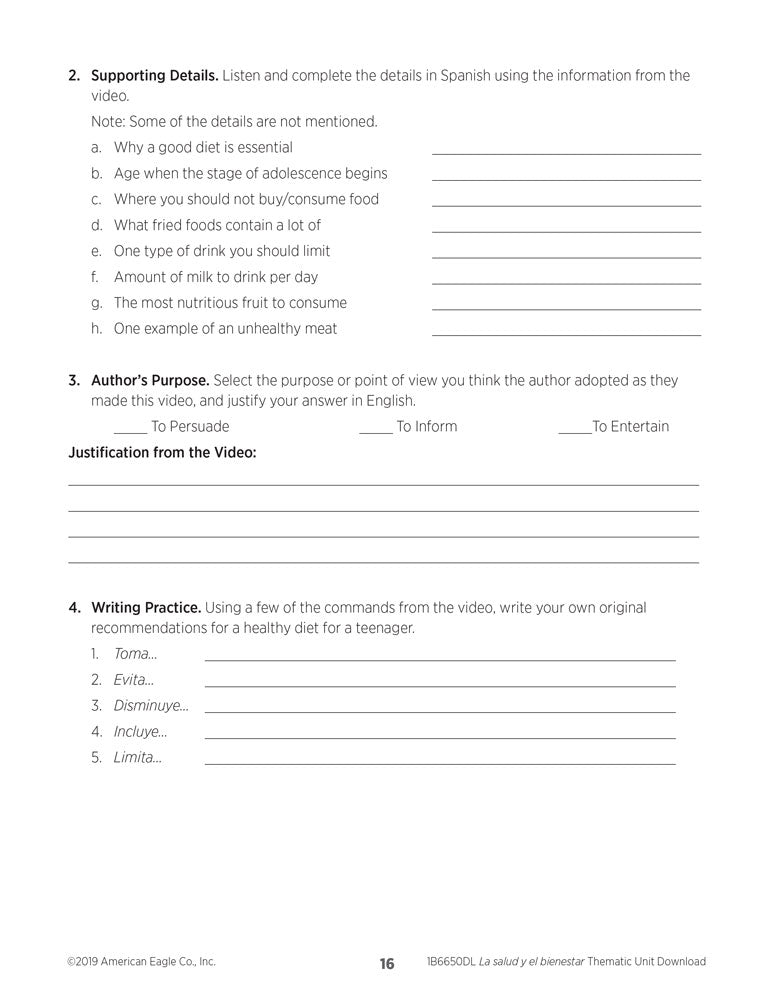 El mundo hispanohablante: La salud y el bienestar Spanish Thematic Unit - DIGITAL RESOURCE DOWNLOAD