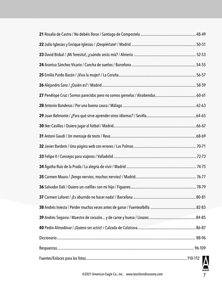 Each story uses magic realism to introduce important people and places from Spain. At each of these places, learn about a prominent figure—a musician, singer, writer, painter, athlete, king, queen, bullfighter, actor, architect, warrior, and many more.