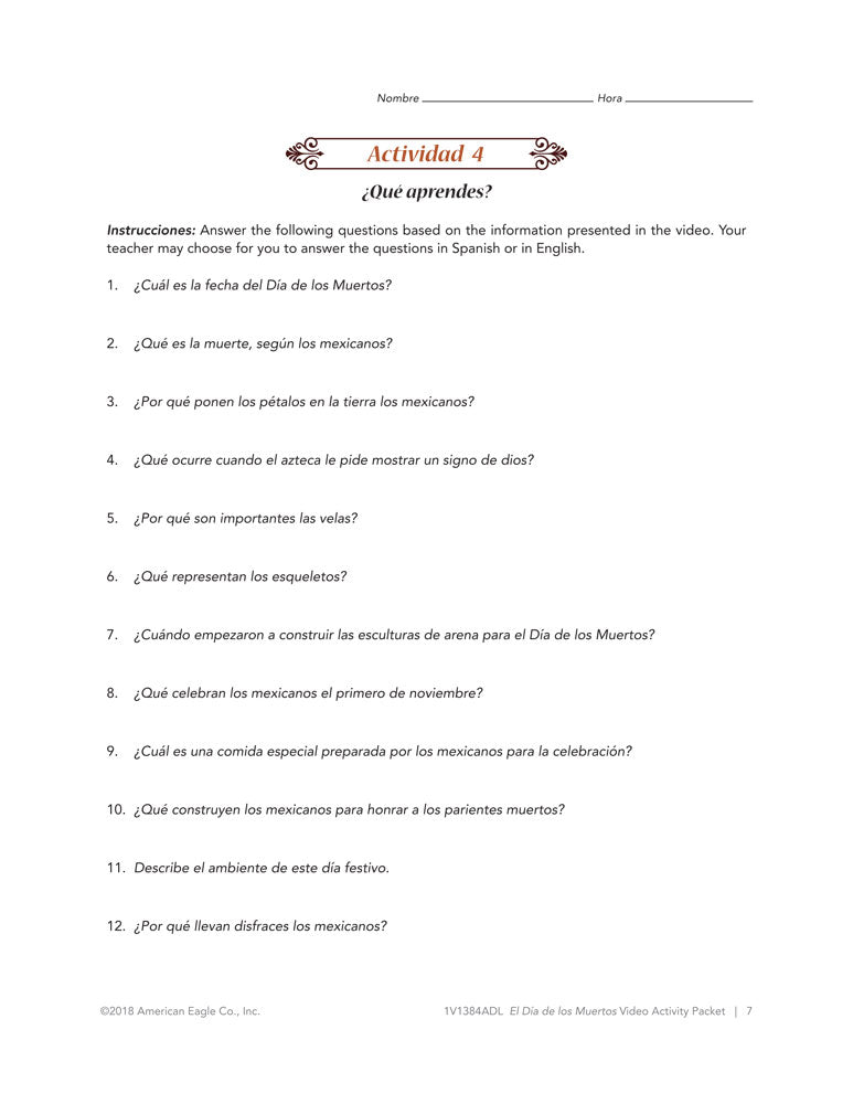 This updated video activity packet features a variety of new activities, ACTFL Standards alignment, and an answer key. Packet includes higher-level thinking activities, featuring vocabulary comprehension, internet research, creative projects, stories, true or false, comparisons, puzzles, and more.