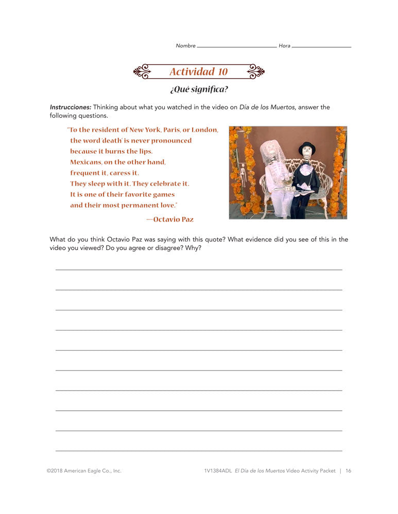 "Teacher’s Inspiration" guides offer strategies and ideas that help you unlock all the potential of classroom resources, while also supporting language acquisition and fostering community in your World Language classroom. This “Teacher’s Inspiration” guide provides you with easy, actionable advice to teach about Day of the Dead in a meaningful, culturally sensitive, and fun way. Download the “Teacher’s Inspiration” for the Day of the Dead here!