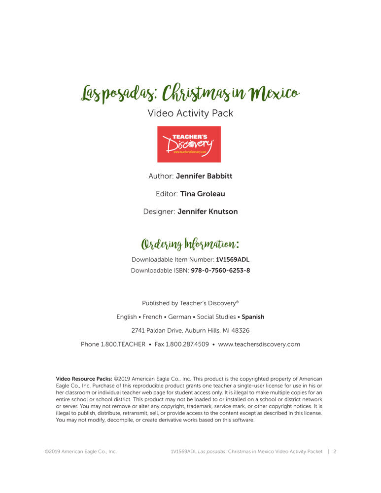 The 2018 Revised Edition Moo! Video Activity Packet is a useful companion to the Las posadas: Christmas in Mexico video. It features a variety of updated activities, ACTFL standards alignment, and an answer key. The packet includes higher-level thinking activities, vocabulary comprehension, internet research, creative projects, stories, true or false, comparisons, puzzles, and more! Instant Download Delivery.