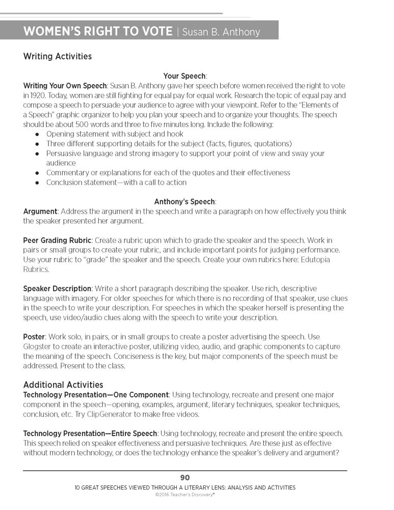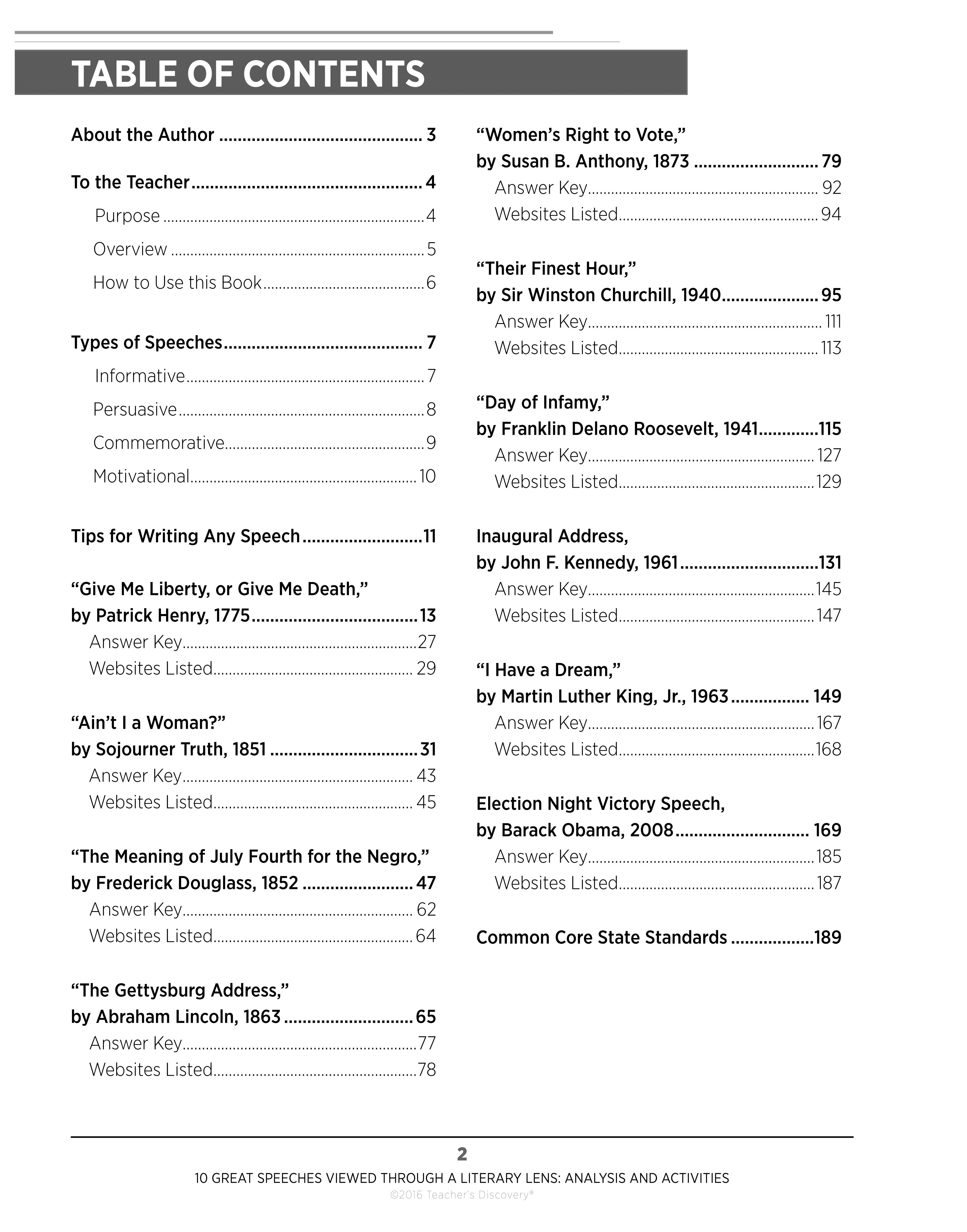 Students actively apply literary techniques—as they do when studying fiction—and intensely examine a nonfiction piece. As they discover the methods the speaker used in composing the speech, and evaluate the often subtle literary practices, they learn what made a well-known speech compelling and memorable.