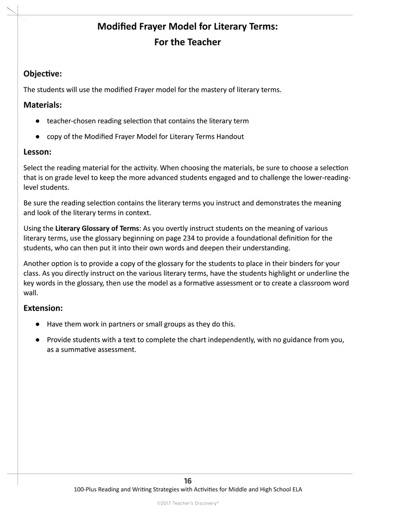 - Modified Frayer Model for Literary Terms: For the Teacher