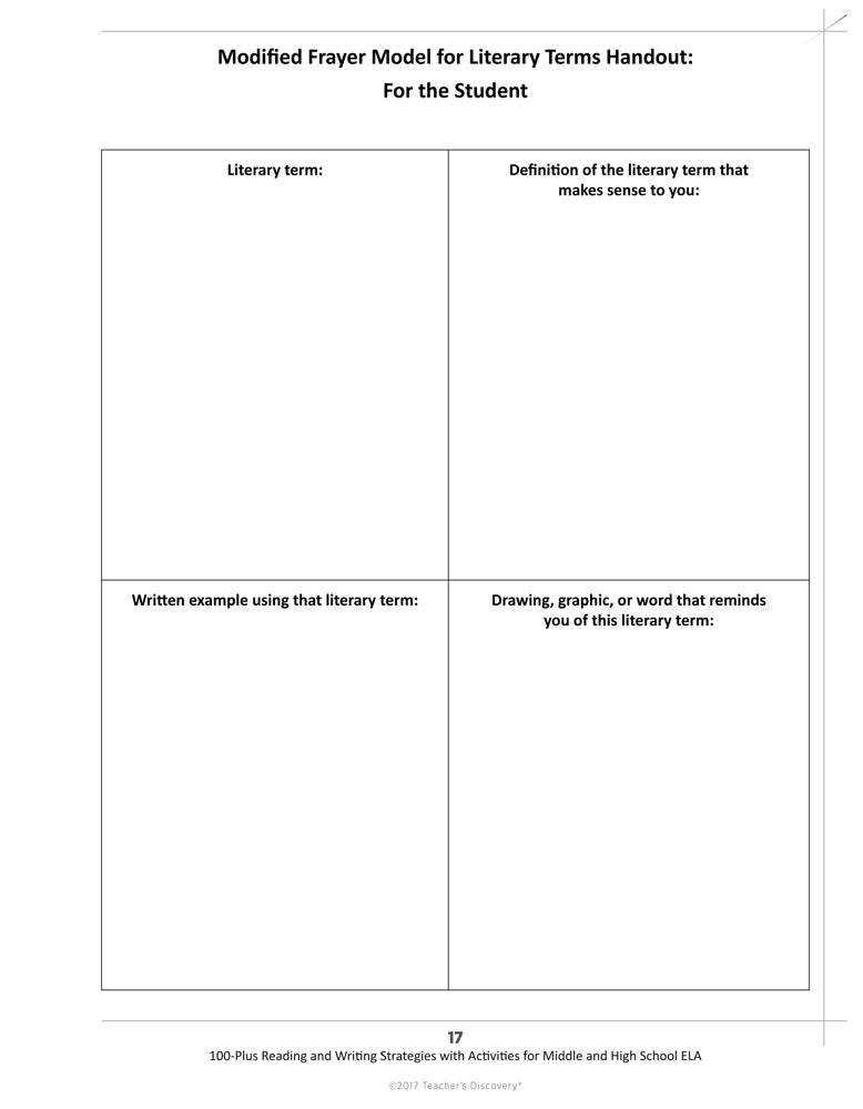 - Modified Frayer Model for Literary Terms Handout: For the Student