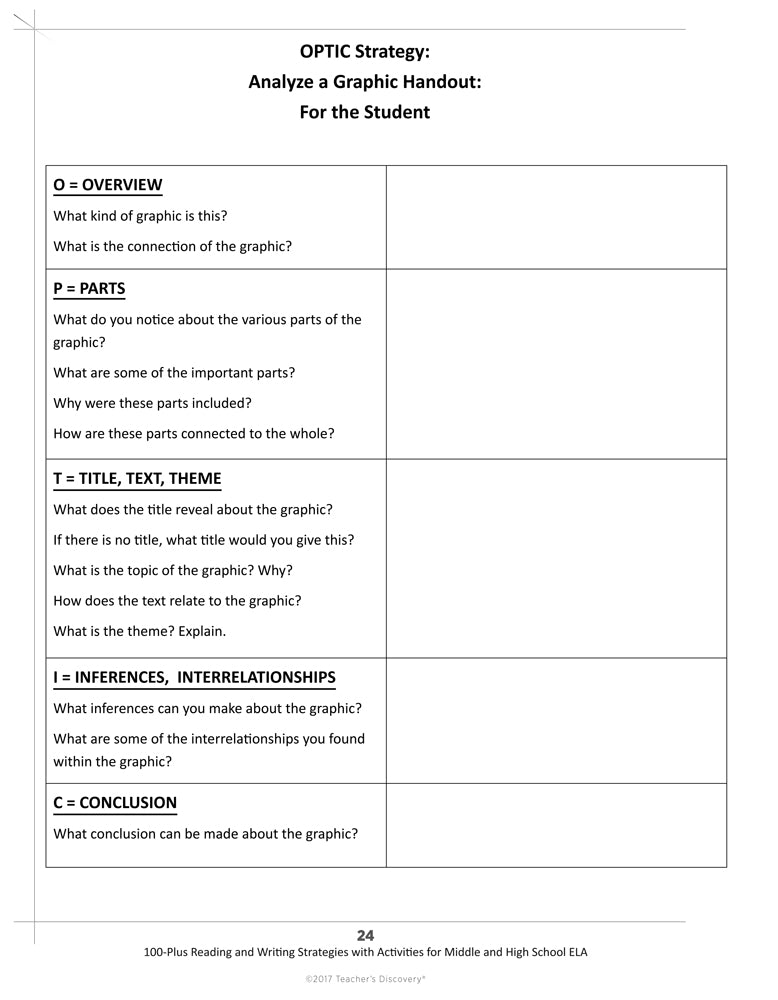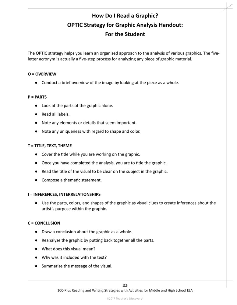 - How Do I Read a Graphic? OPTIC Strategy for Graphic Analysis: For the Teacher