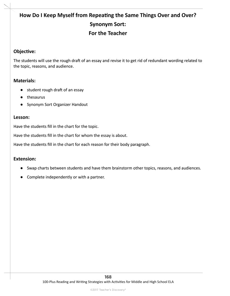 - How Do I Keep Myself from Repeating the Same Things Over and Over? Synonym Sort: For the Teacher
