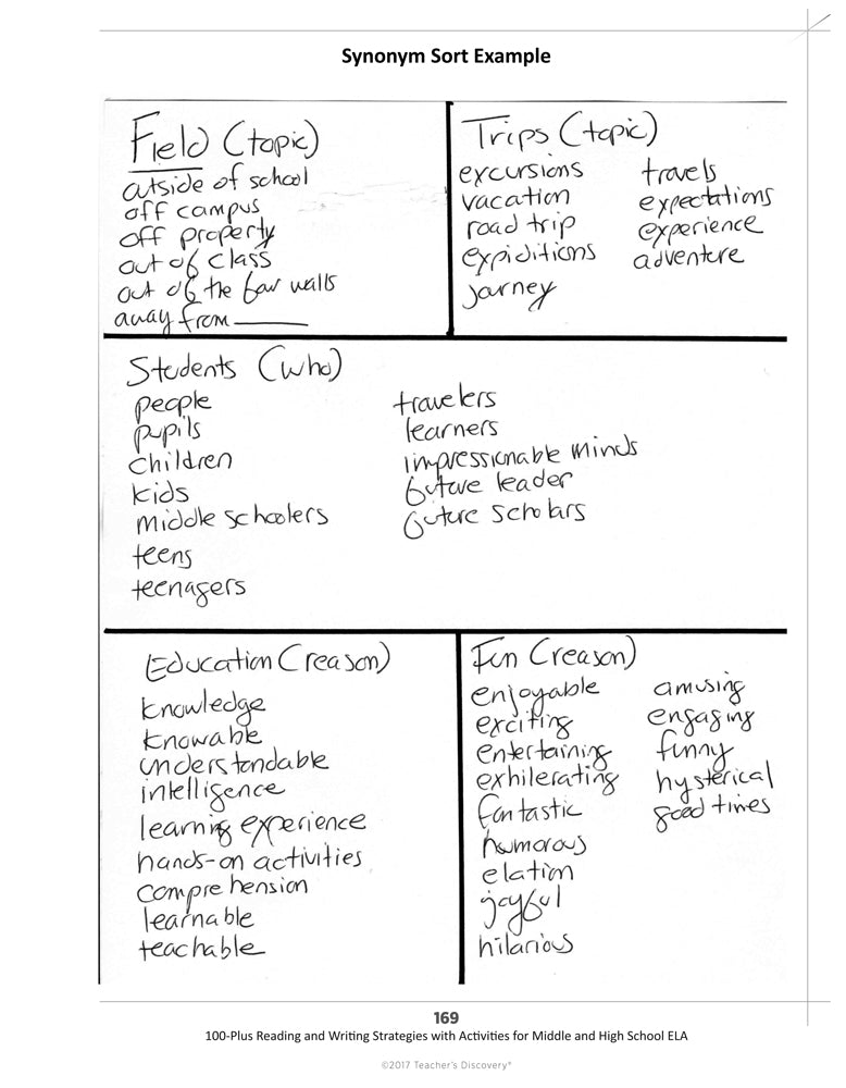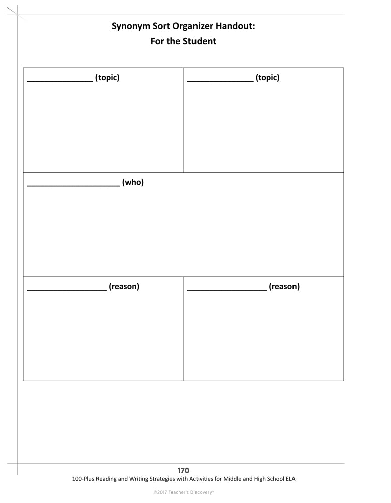 - Synonym Sort Organizer Handout: For the Student