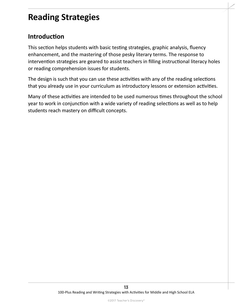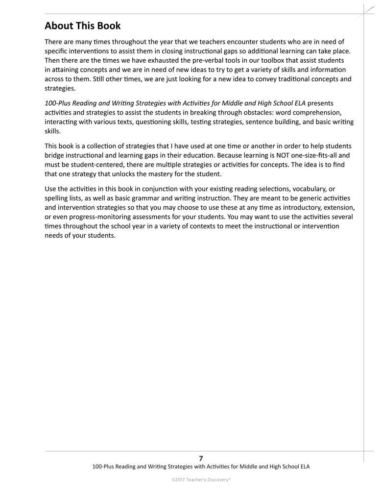 100-Plus Reading and Writing Strategies with Activities for Middle and High School ELA Book