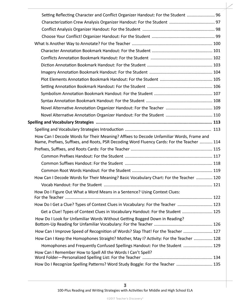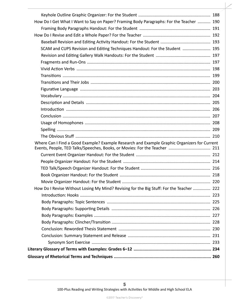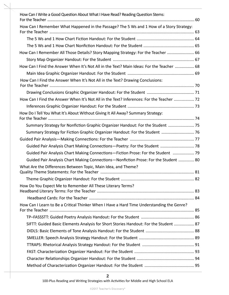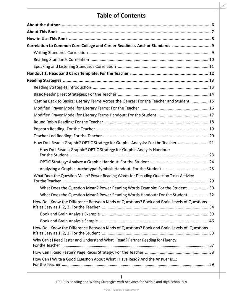 100-Plus Reading and Writing Strategies is divided into six sections: