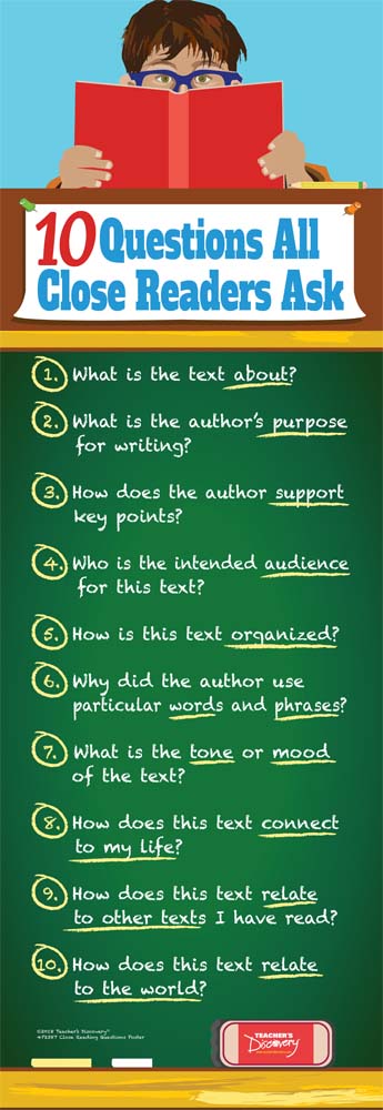 Show students that close readers ask questions about texts to increase comprehension, aid analysis, and encourage evaluation.