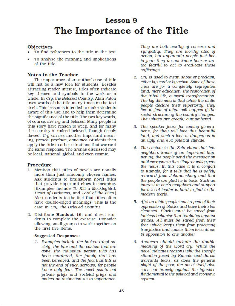 Cry, The Beloved Country Curriculum Unit is backordered and will ship as soon as it is back in stock.