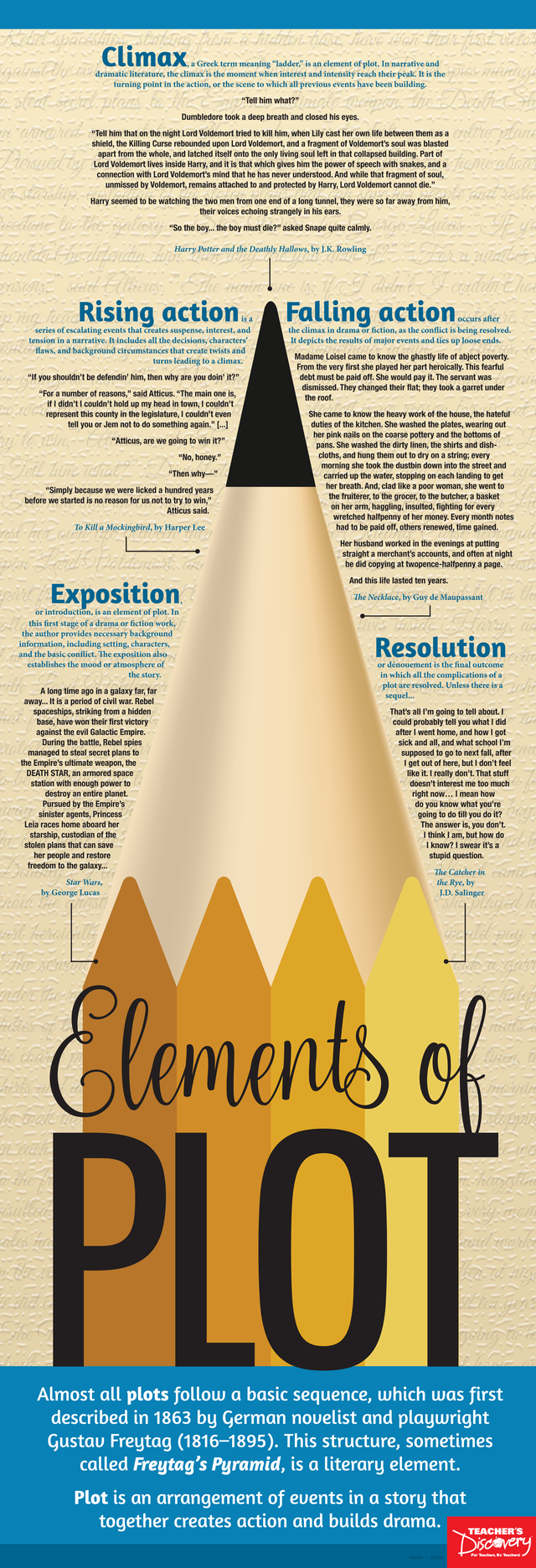 How does an author create excitement and suspense? The various elements of a plot are explained with examples that make it easy for your students to understand exposition, rising action, and more.