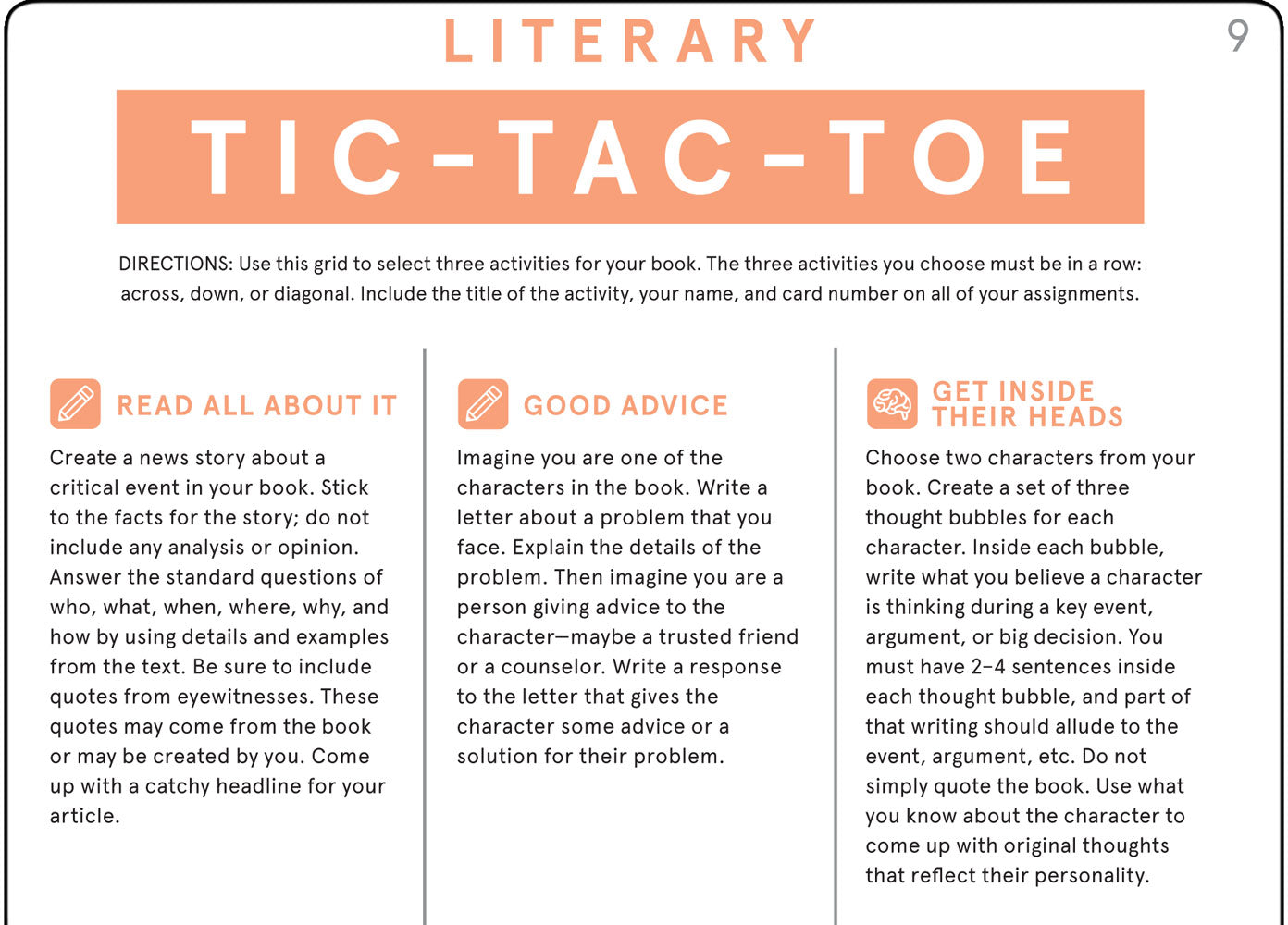 Literary Tic-Tac-Toe provides differentiation three ways: