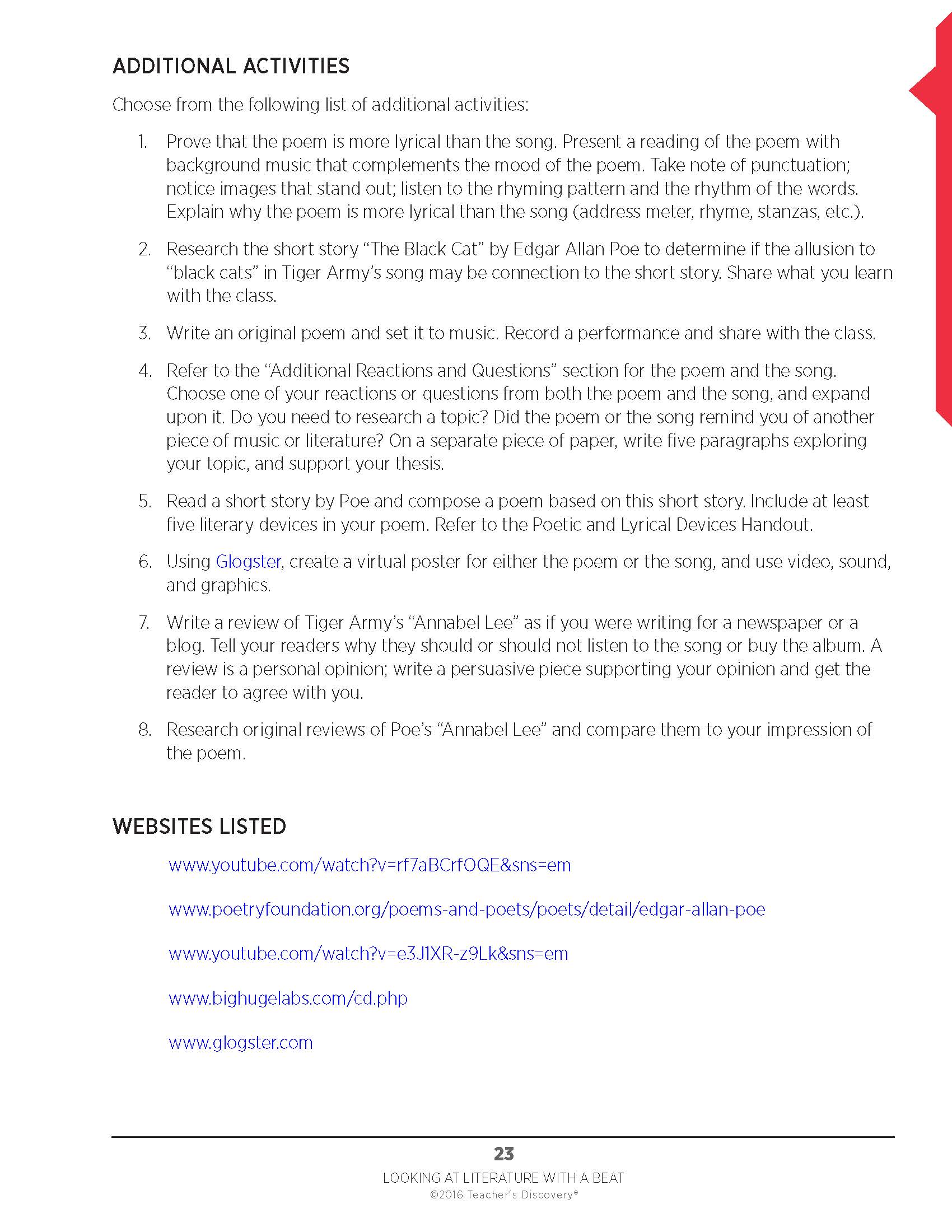 Looking at Literature with a Beat: Poem and Song Pairings Analysis and Activities Book